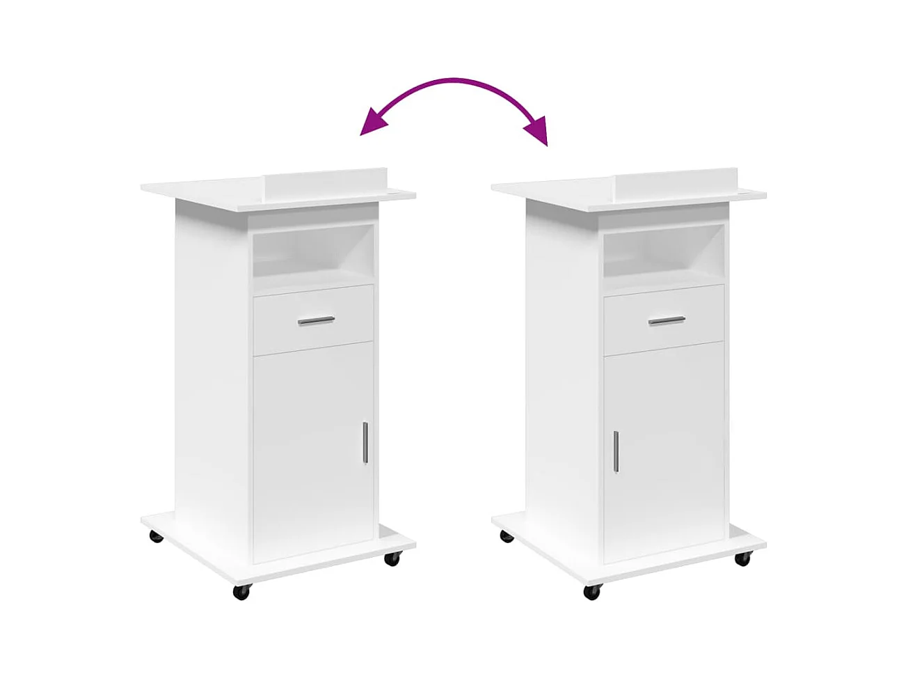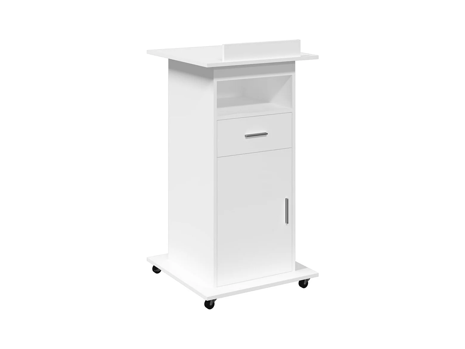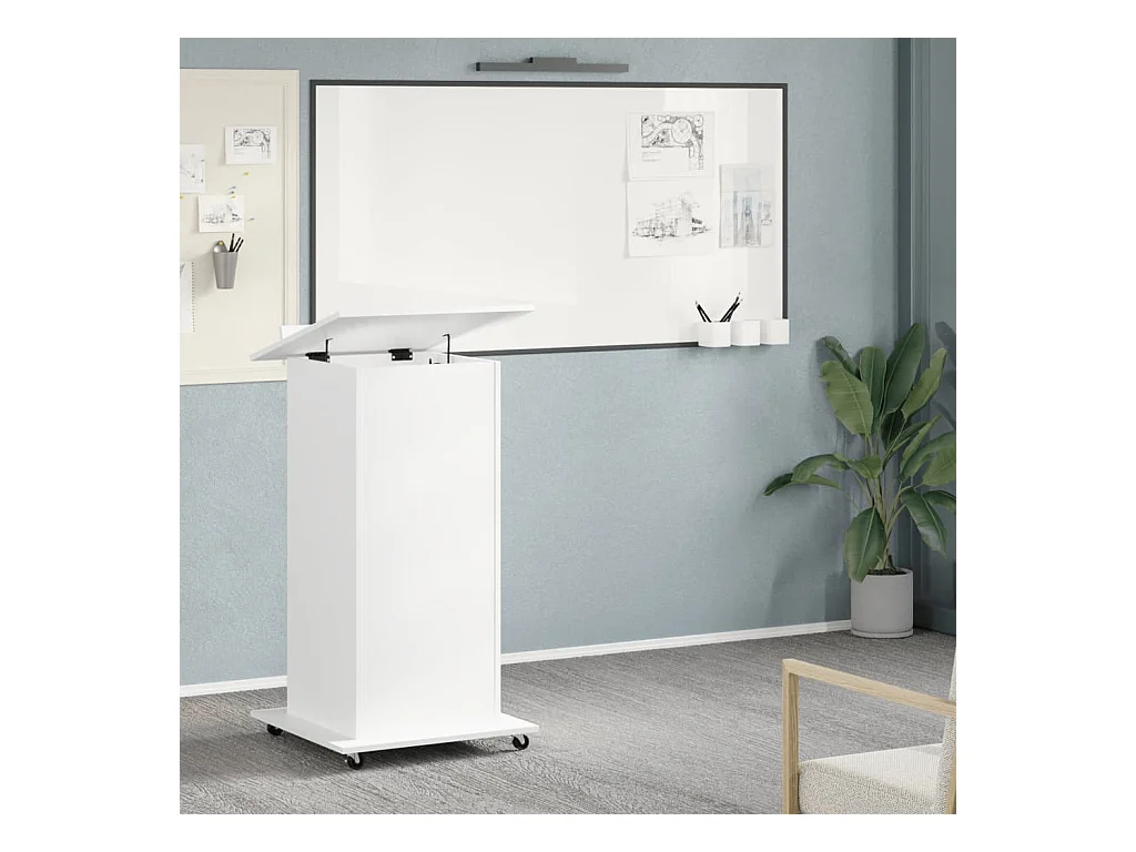 Pupitre et roues et tiroir blanc 55x55x107 cm bois d'ingénierie