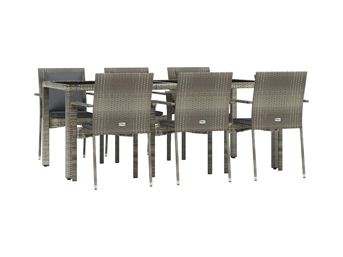 Pyhäntä Ensemble à manger jardin et coussins 7 pcs gris rotin