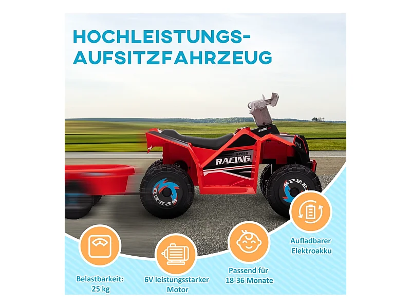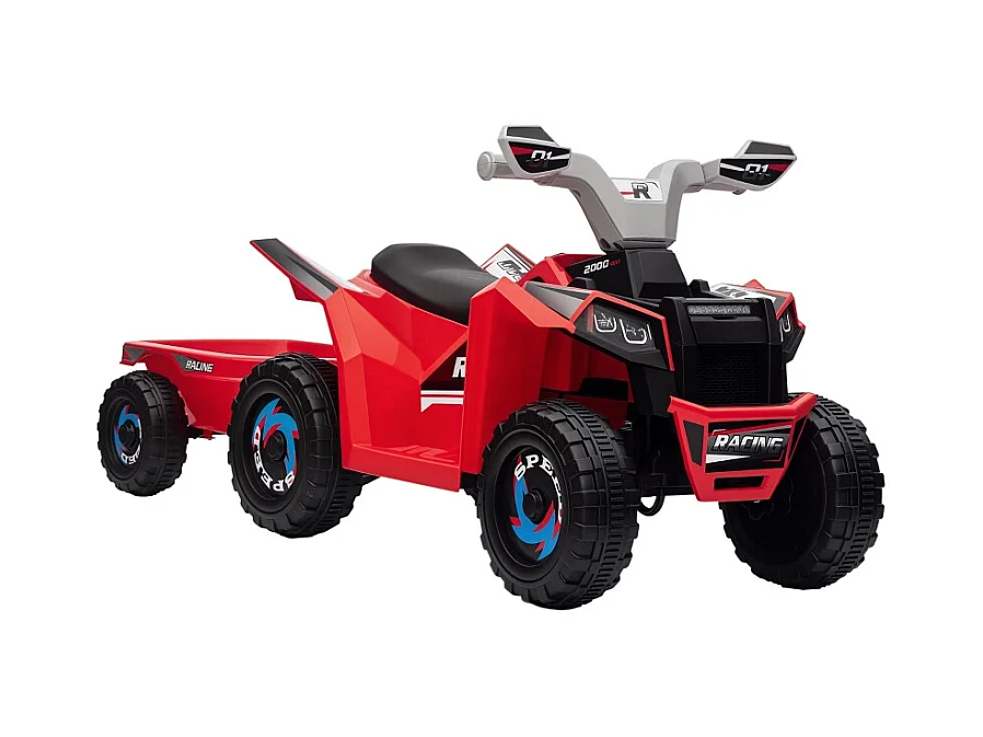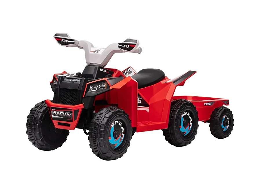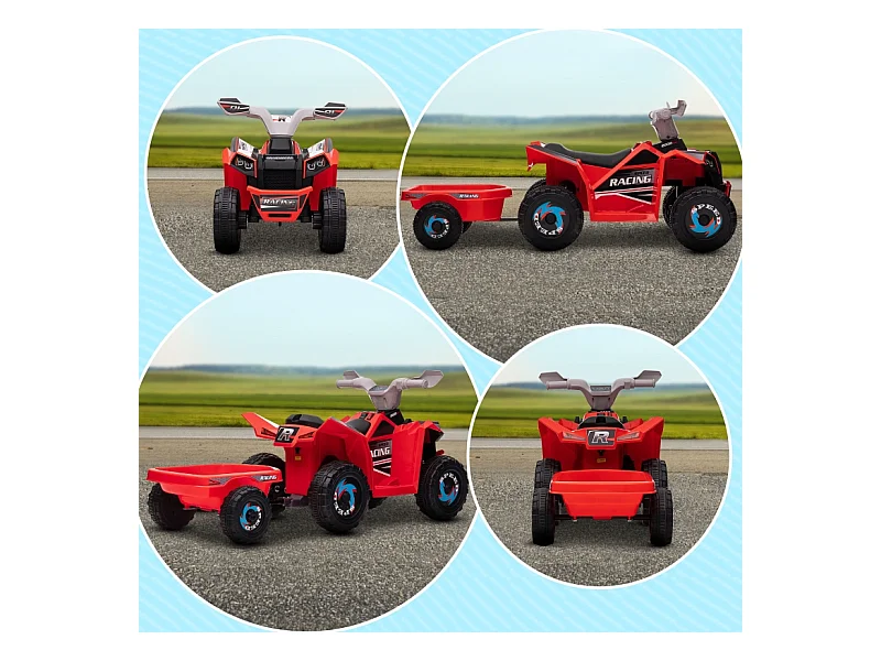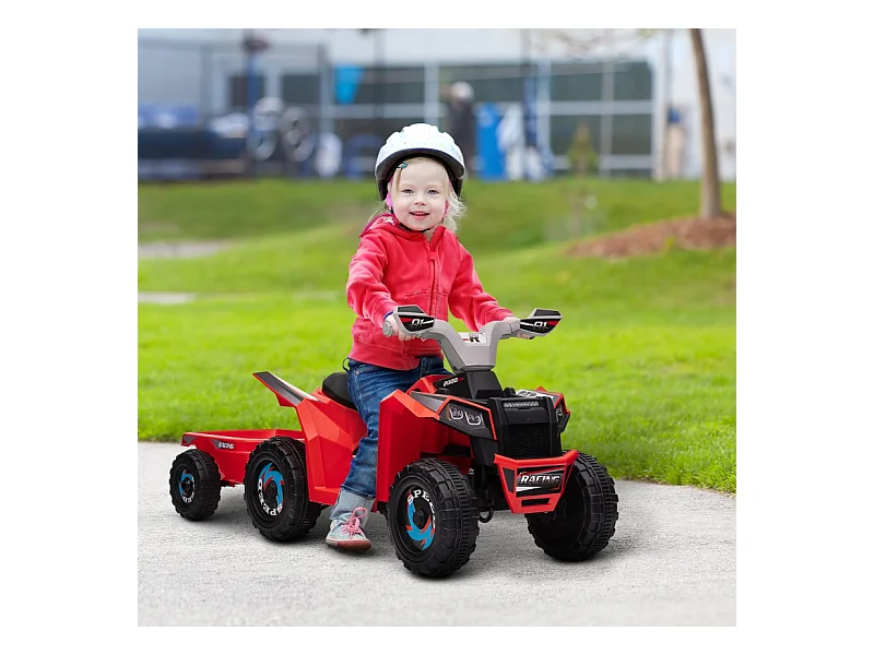 Quad électrique pour enfant avec remorque, vitesse 2.5 km/h, métal, rouge (106x41.5x48.5 cm)