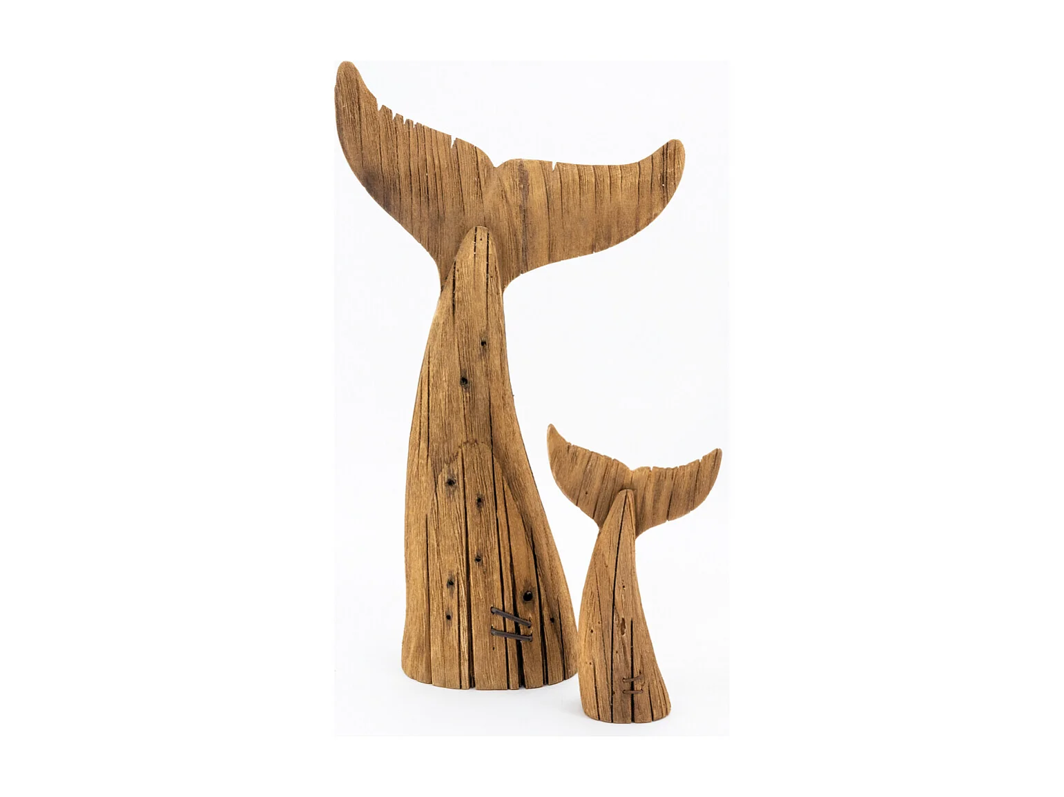 Statuette Déco Bois "Poisson sur Pied" 40cm Beige