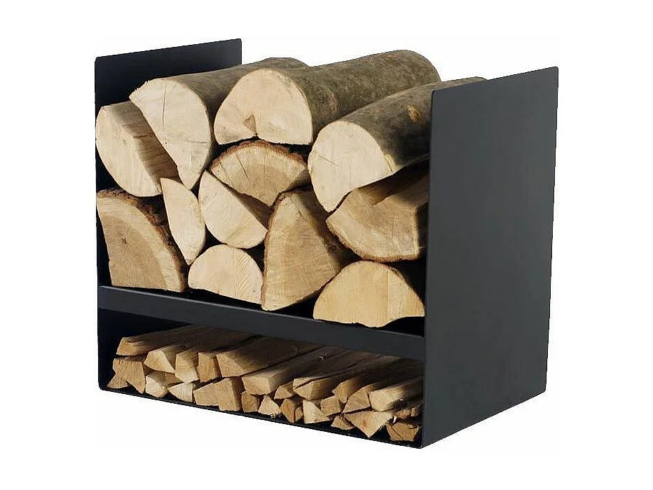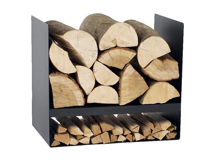 Rack à bûches CASO en acier noir avec rangement 45x30x80 cm