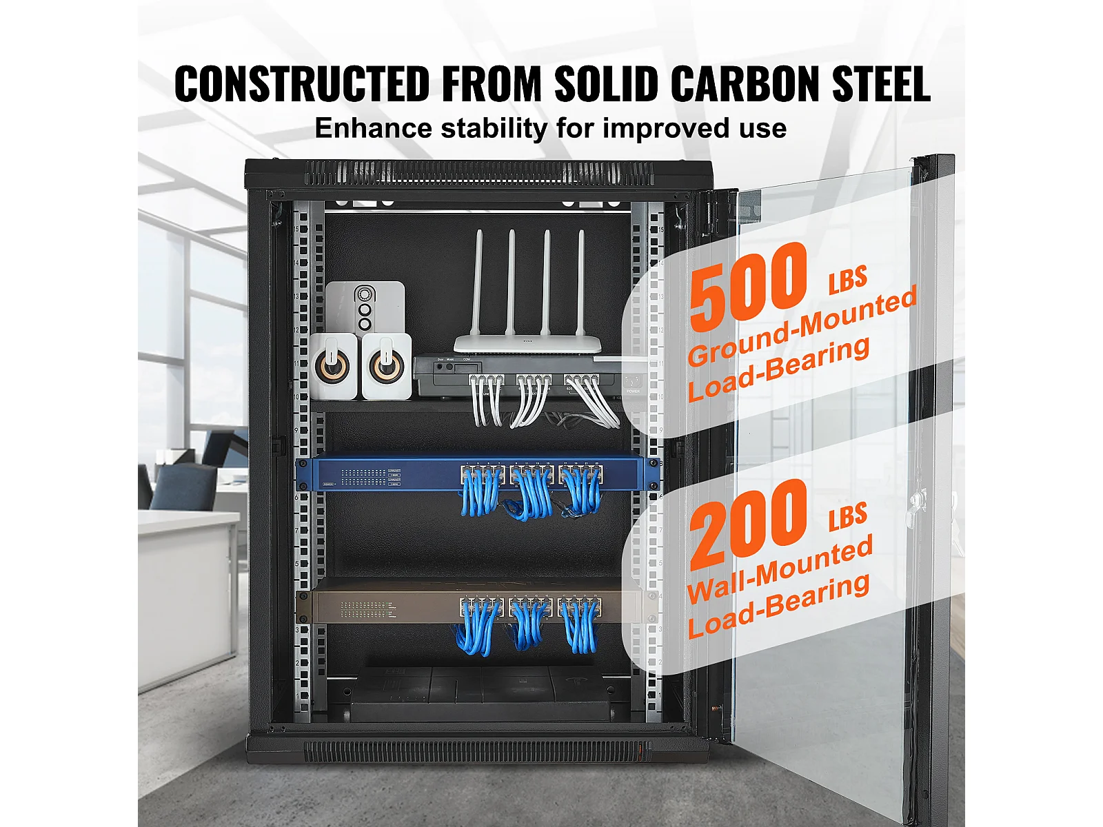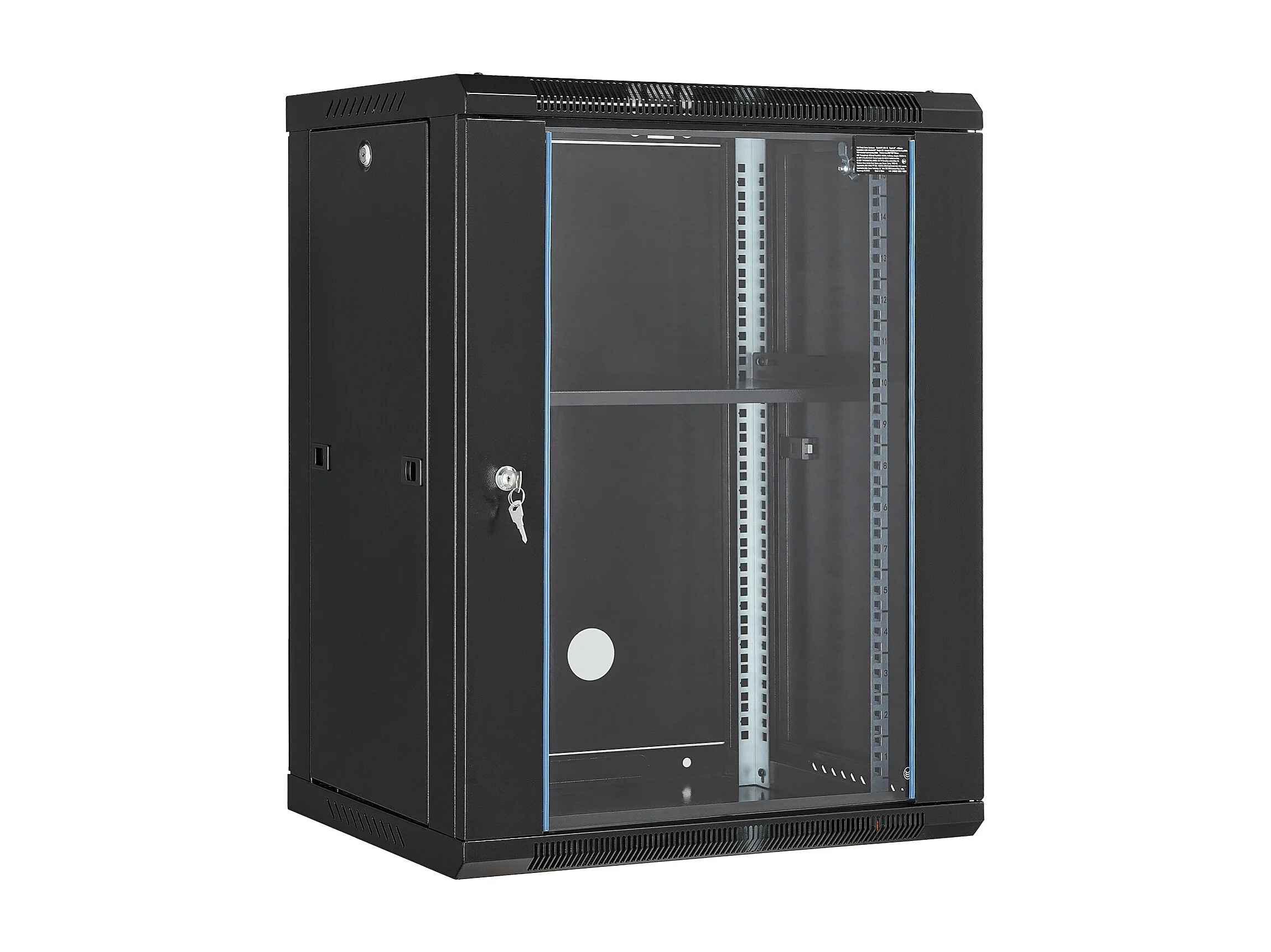 Rack de Serveur SucceBuy 15U Rack de Serveur Réseau à Montage Mural, Porte en Verre de 46cm, Boîtier d'Armoire, Verrouillable, Noir