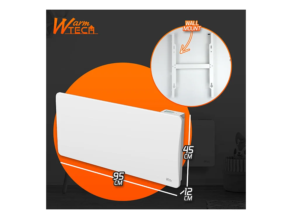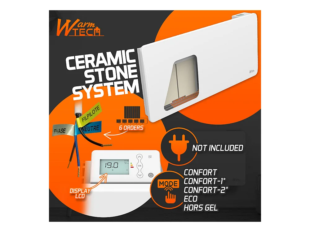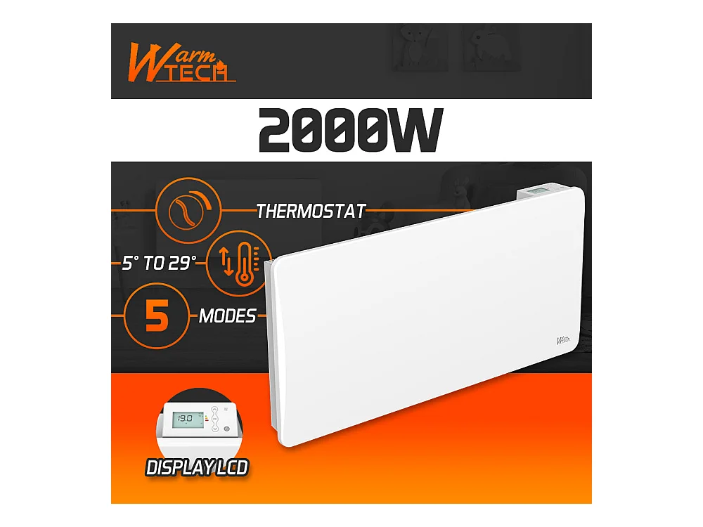 Radiateur à inertie céramique 2000 W, mural, blanc - Thermostat LCD