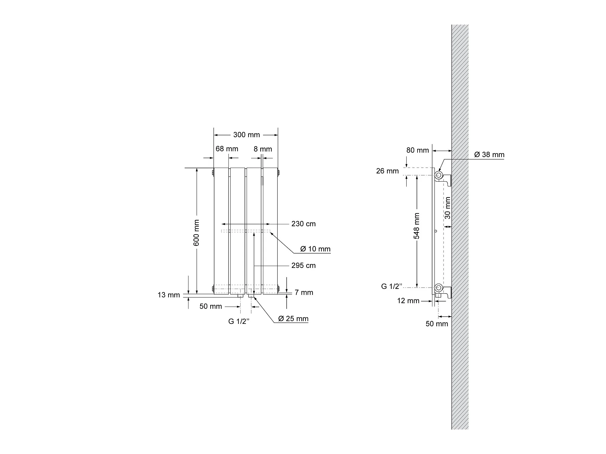 Radiateur à panneaux simple couche raccord mural forme d'angle blanc 300x600 mm