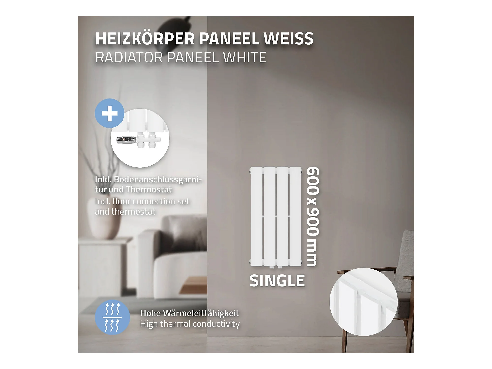 Radiateur blanc salle de bain monocouche 300x600 mm raccord universel thermostat