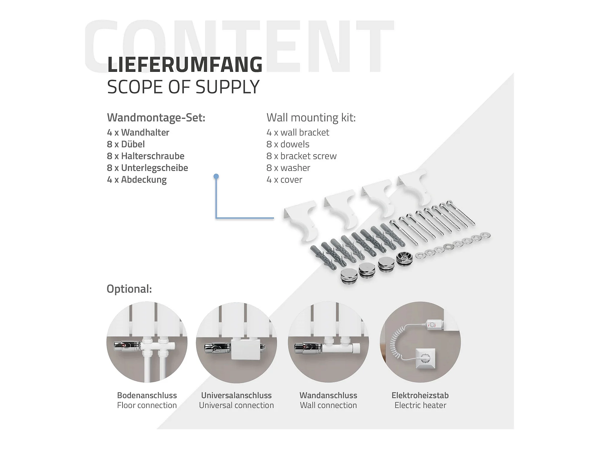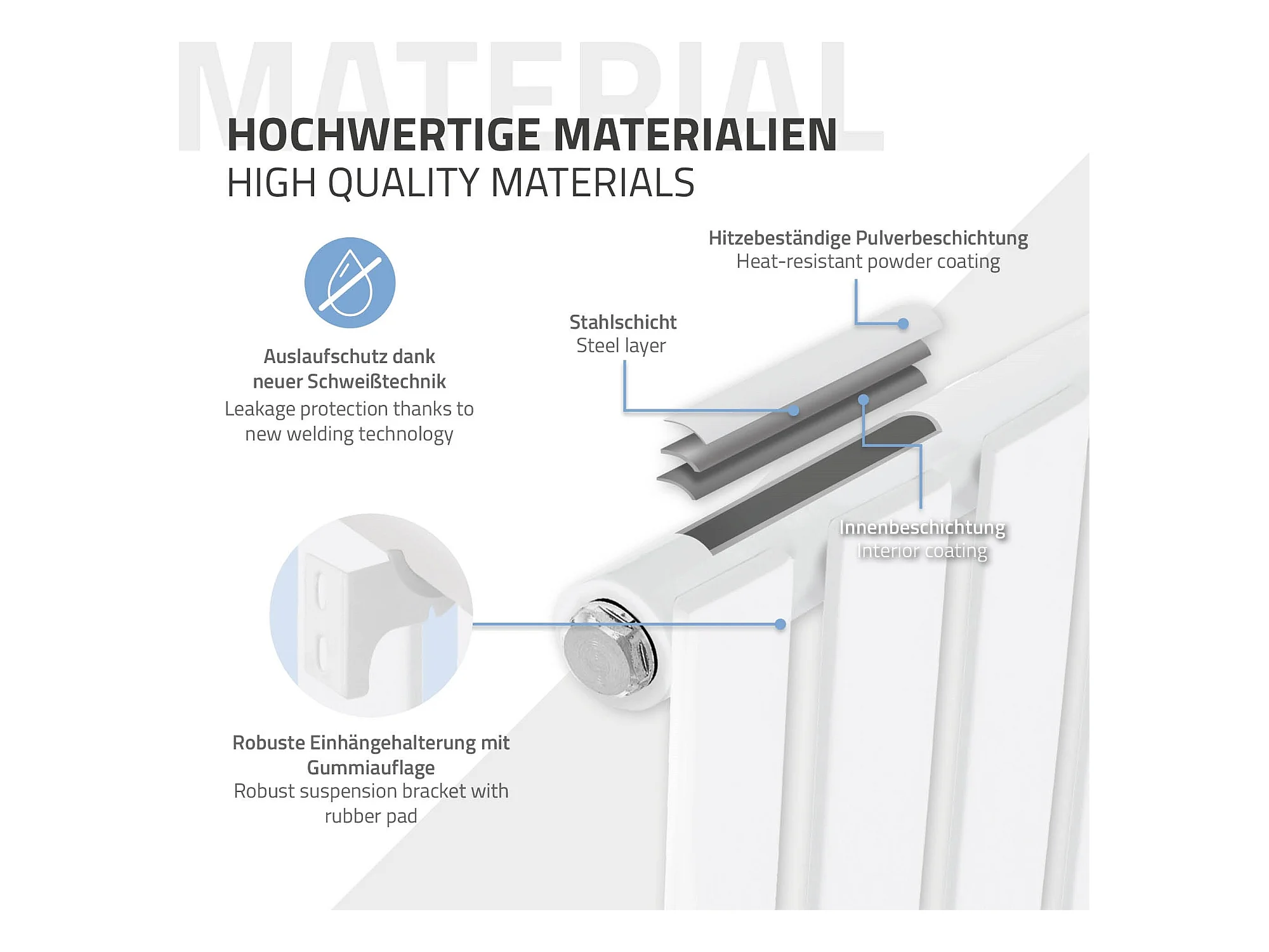 EMKE Radiateur eau chaude horizontal en acier H.60 × L.84 cm 1383 W Le design Chauffage central blanc