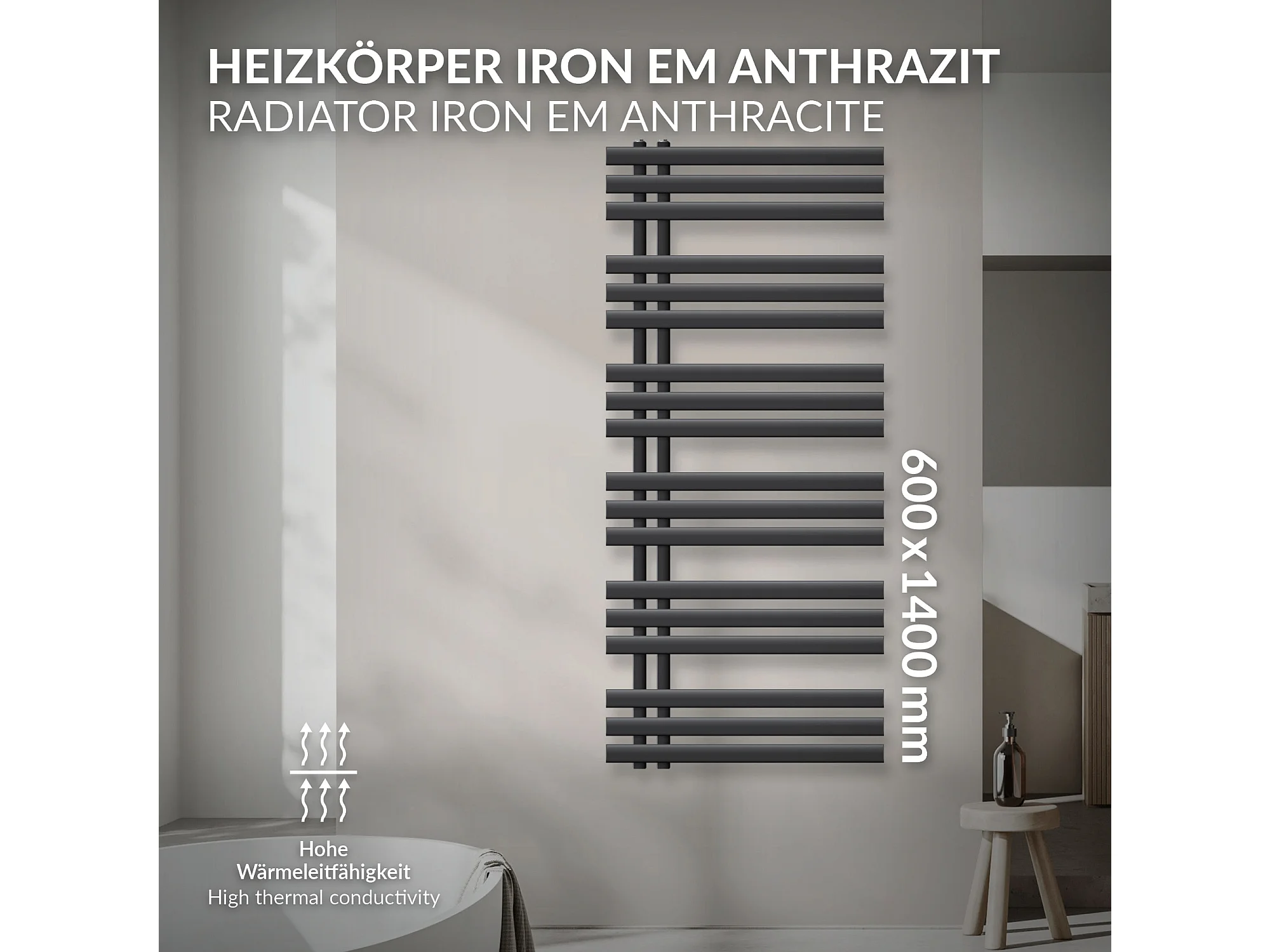 Iron EM Design Radiateur Sèche-Serviettes, 600 x 1400 mm, Anthracite, Radiateur