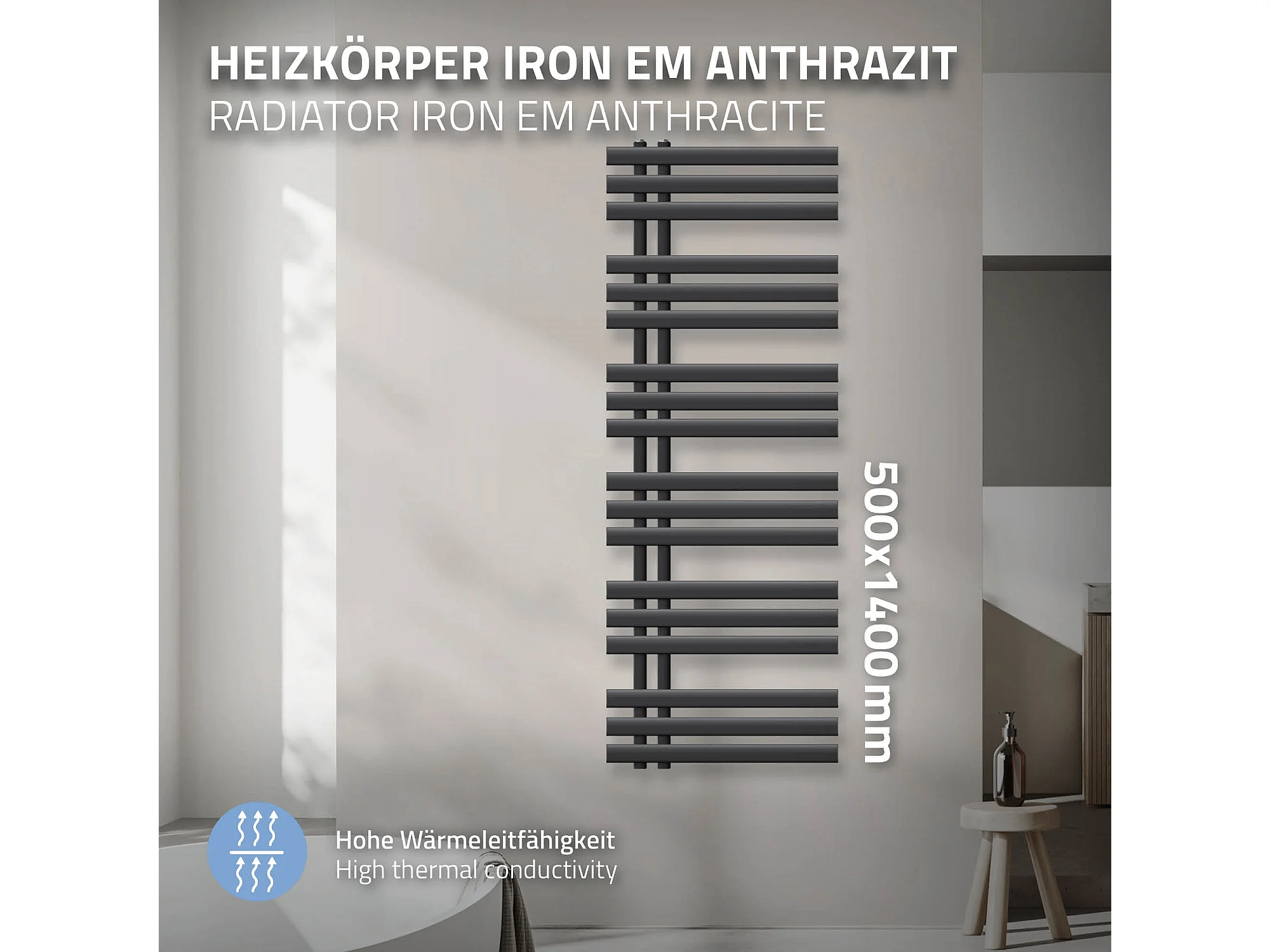 Radiateur de salle de bains design Iron EM 500x1400 mm Anthracite LuxeBath