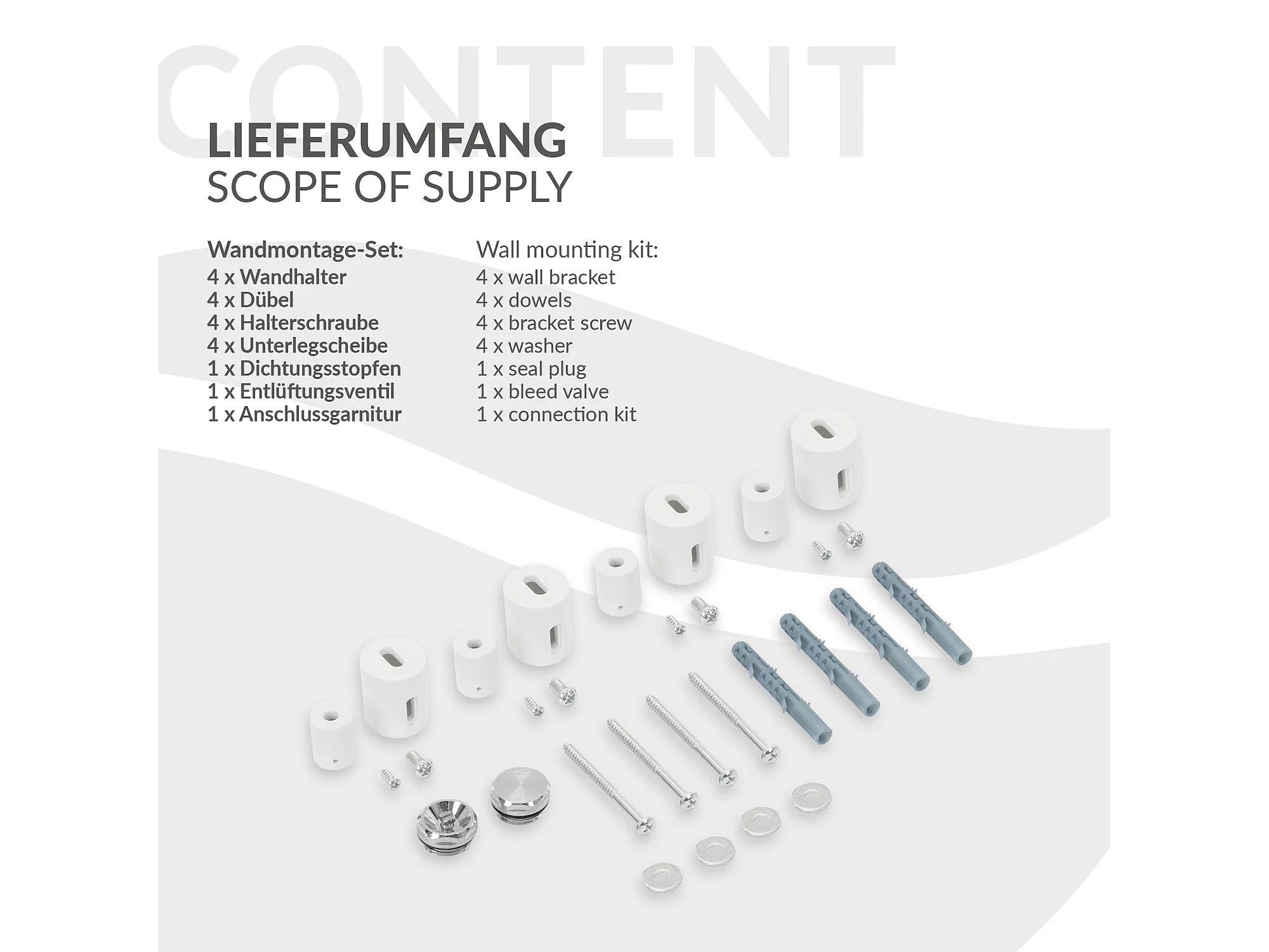 Radiateur Design Iron EM 500x1000 mm Blanc Raccord Central au Bas avec Garniture