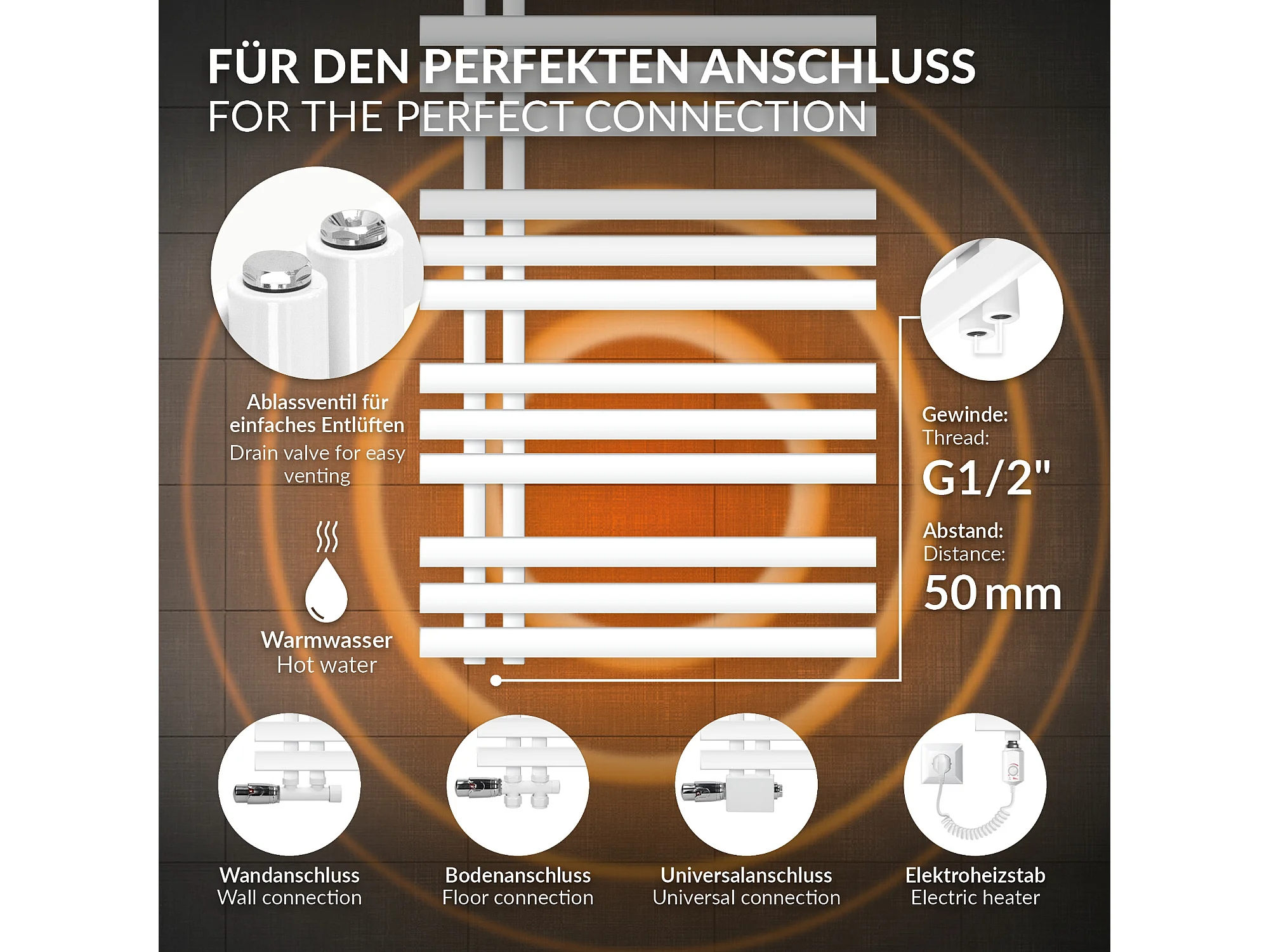 Radiateur Design Iron EM 600x1600 mm Blanc Raccord Central au Bas avec Garniture