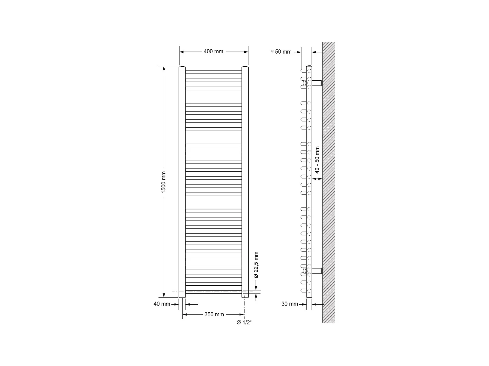 Radiateur Sèche-serviettes électrique 500 x 1500 mm Barre coudée chromée 900W
