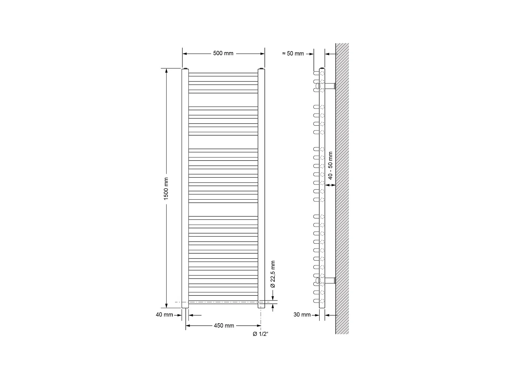 Radiateur Design Sahara Electrique avec Elément Chauffant 1200W, 500 x 1500 mm, Blanc