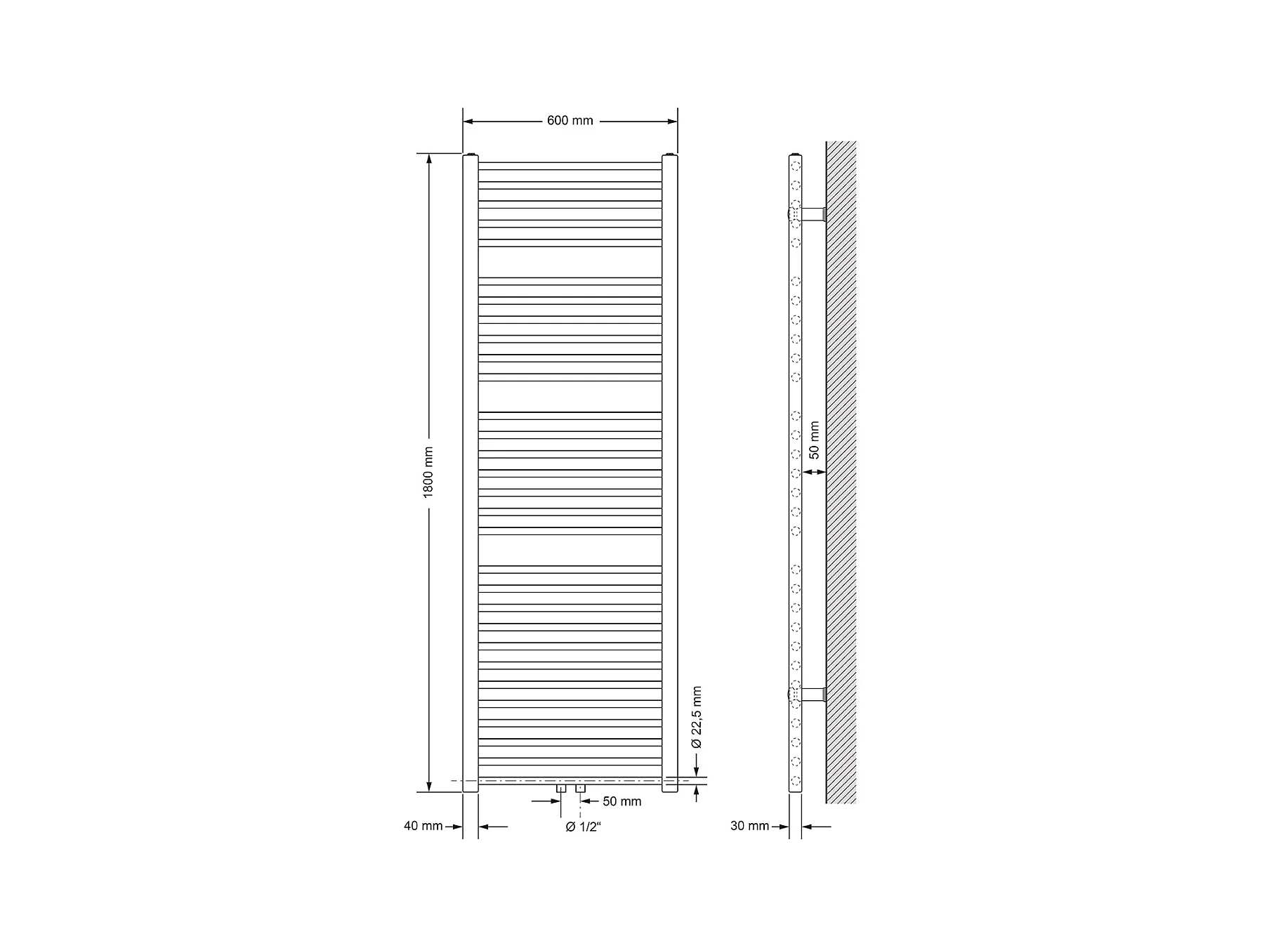 Radiateur Design Sahara Non Electrique, 600 x 1800 mm, Blanc, Connexion Central