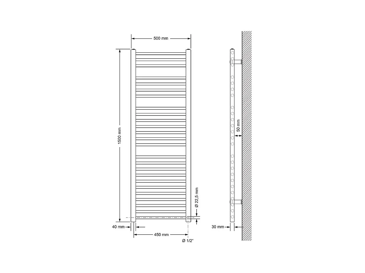 Radiateur Sèche-serviettes électrique 500 x 1500 mm Barre coudée chromée 900W