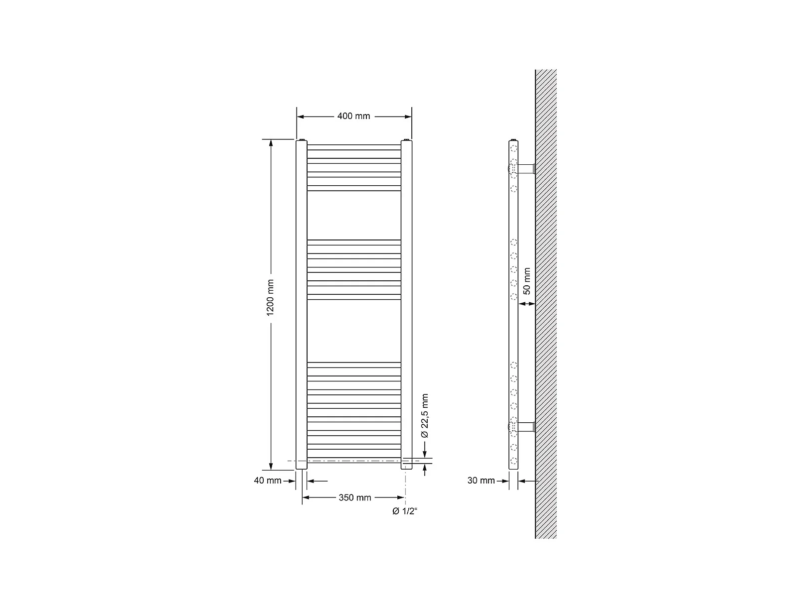 Radiateur sèche-serviettes en acier anthracite 50x120cm élément chauffant 1200W