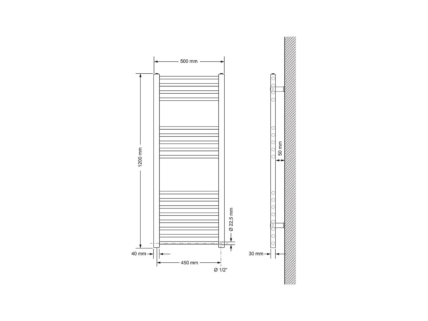 Radiateur sèche-serviettes en acier anthracite 50x120cm élément chauffant 1200W