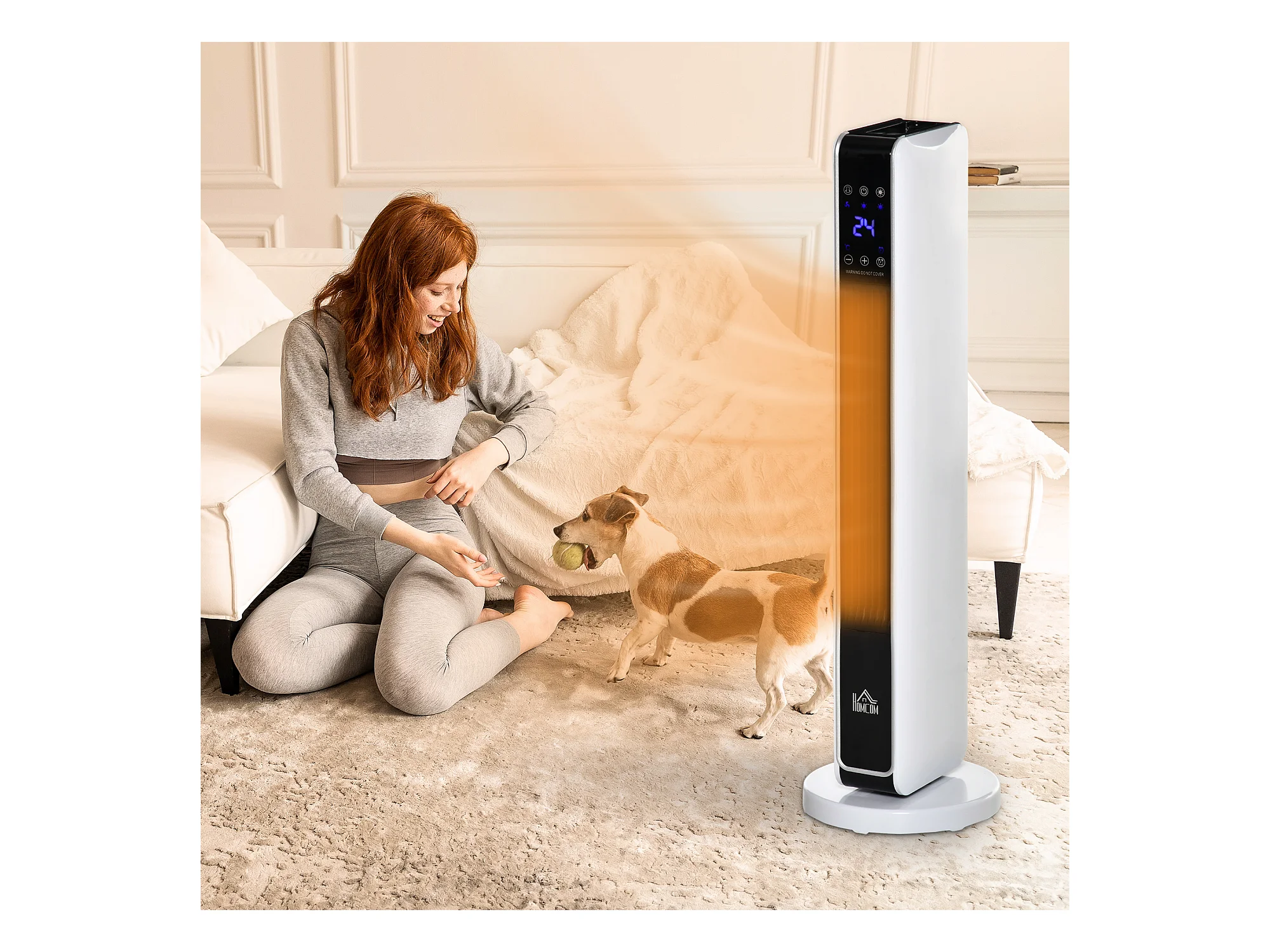 Radiateur électrique céramique PTC - chauffage soufflant oscillant 1100/2200W - télécommande incluse - timer 8h - blanc