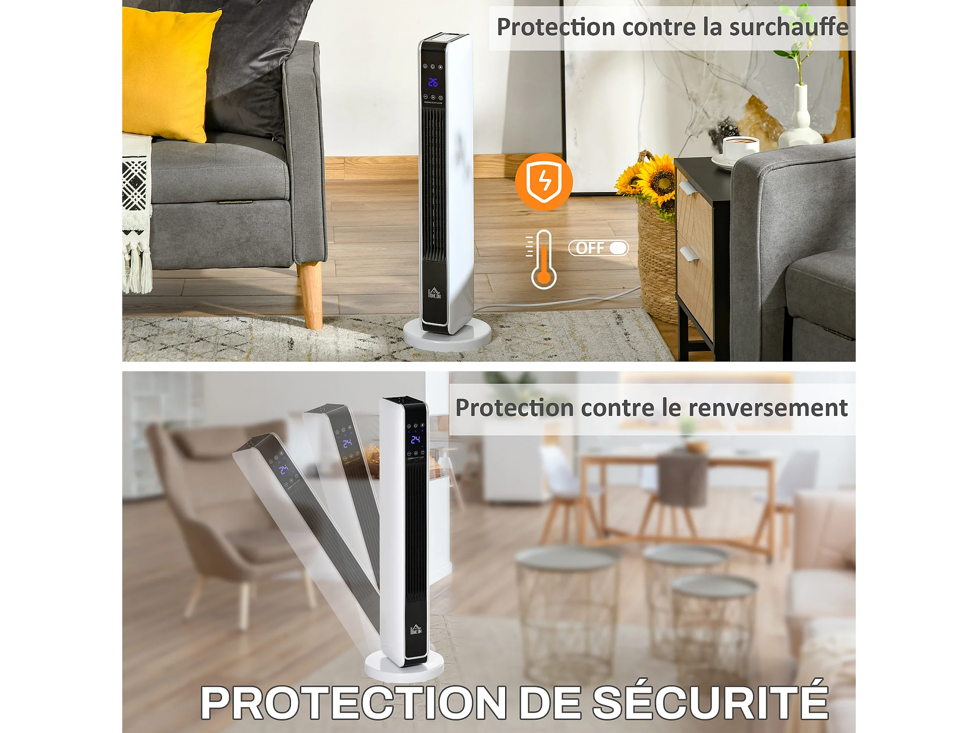 Chauffage soufflant oscillant 2000 W - radiateur céramique PTC - 3 niveaux de puissance - chauffage d'appoint avec télécommande blanc noir