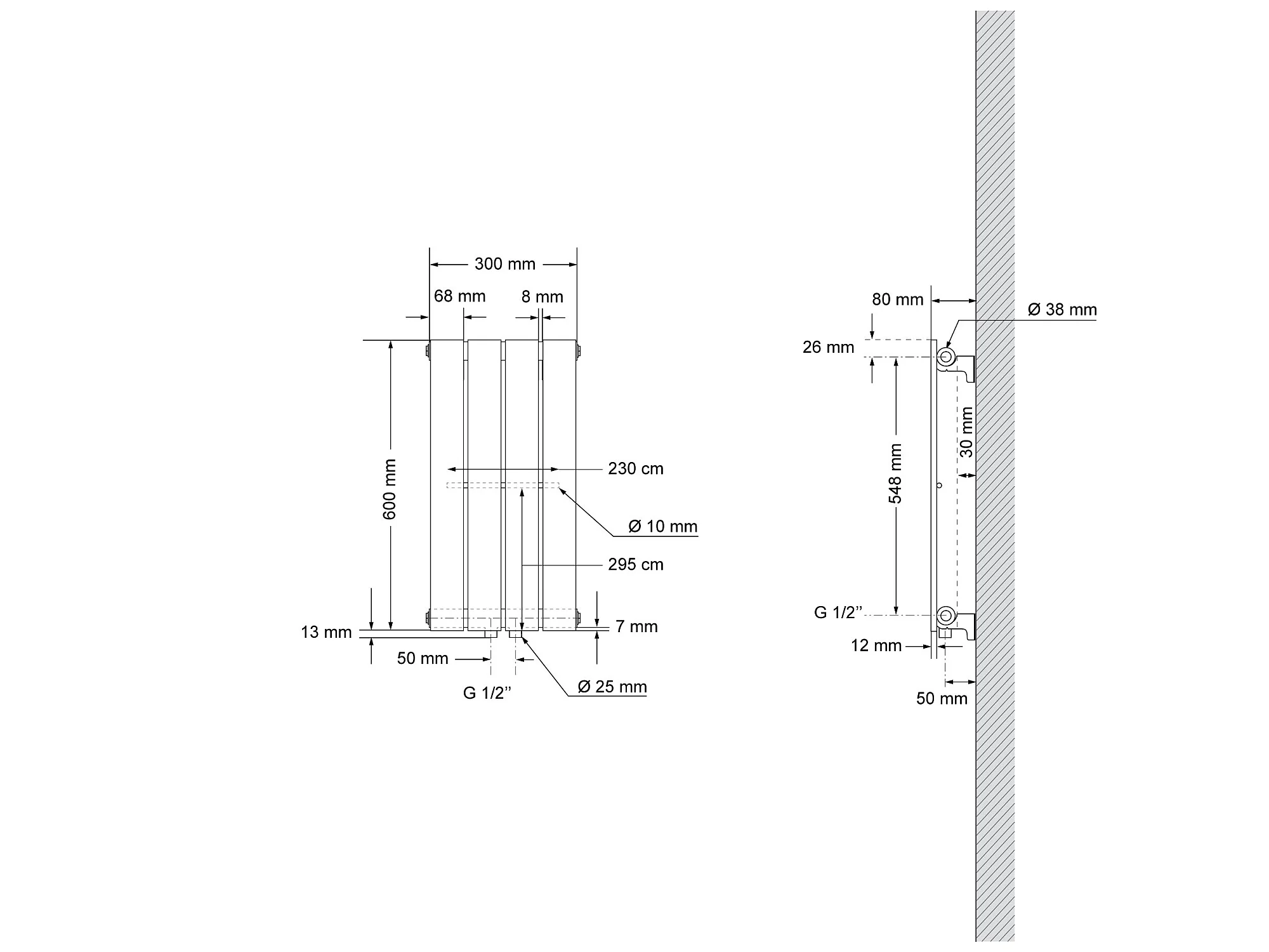 Radiateur anthracite avec raccord central au sol version traversante 300x600 mm