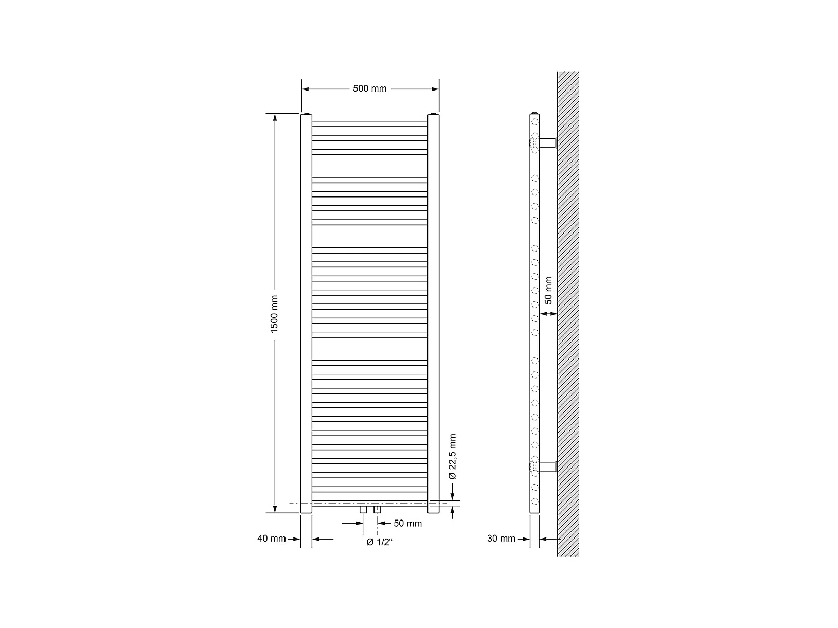 Radiateur Sèche-Serviettes Sahara, 500 x 800 mm, Chrome, Connexion Latéral