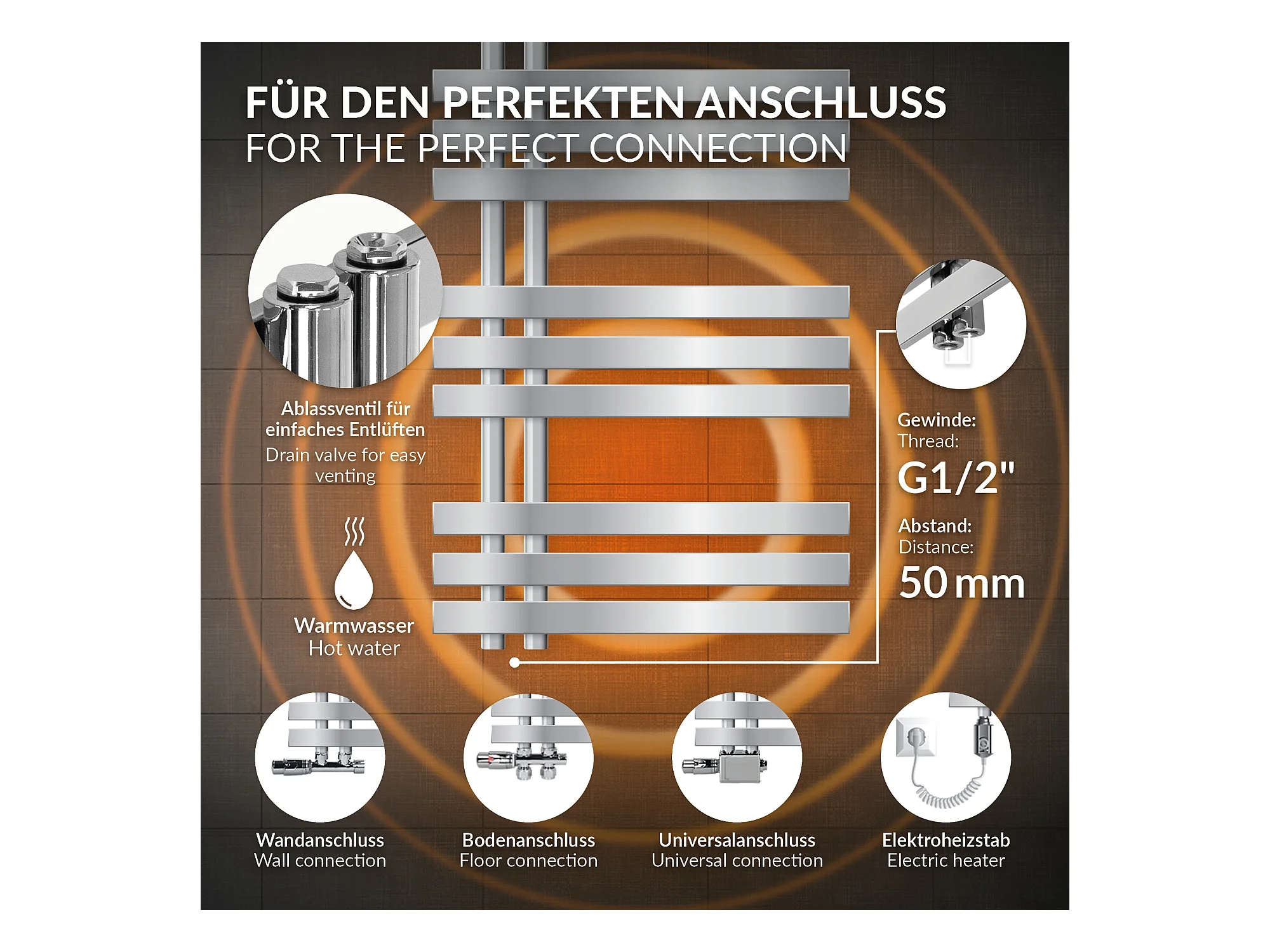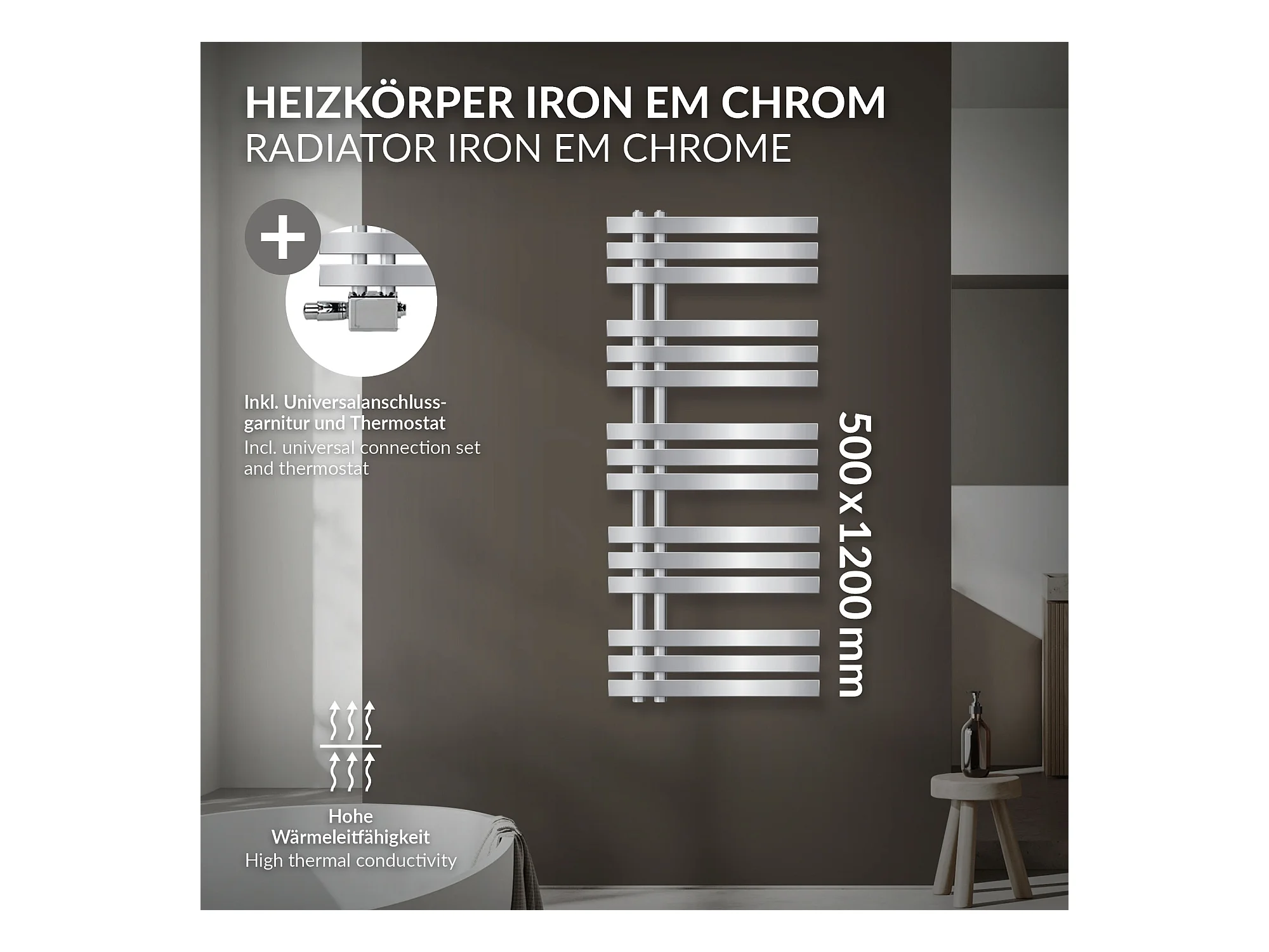 Radiateur sèche-serviettes chrome avec raccordement universel 50x120 cm