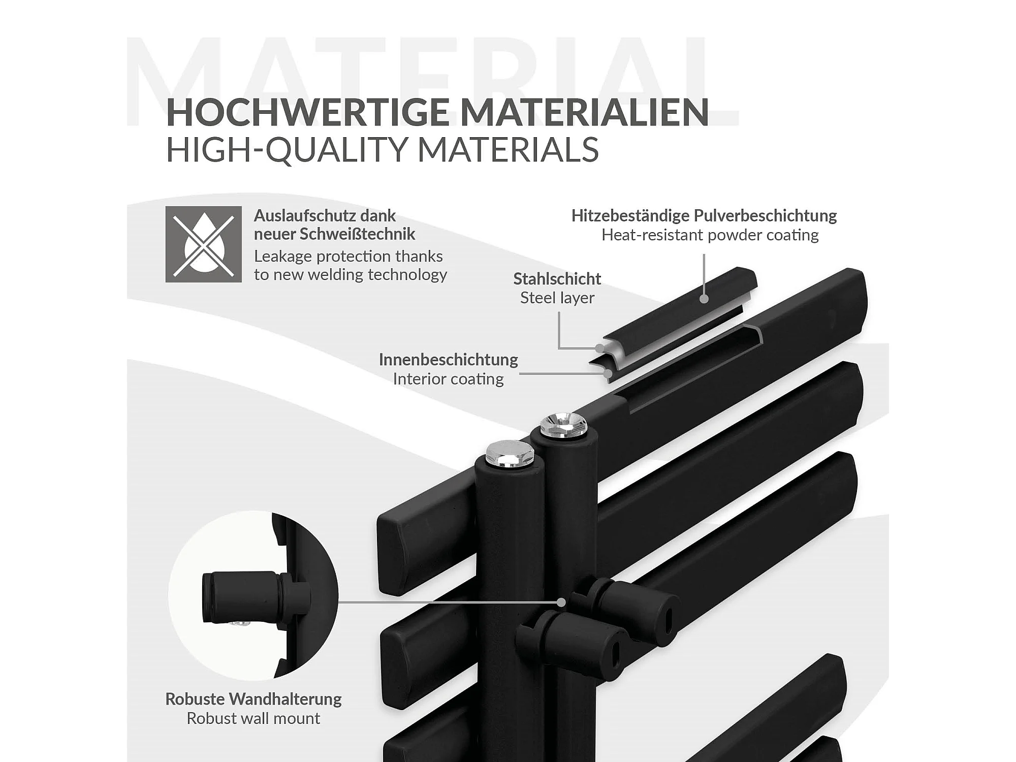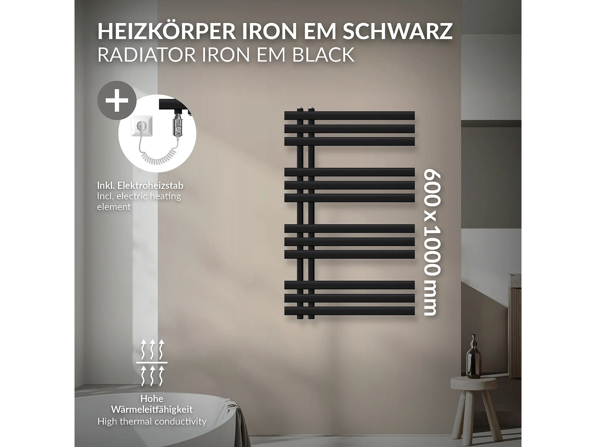 Radiateur sèche-serviettes de salle de bain noir 60x100 cm avec résistance 600W