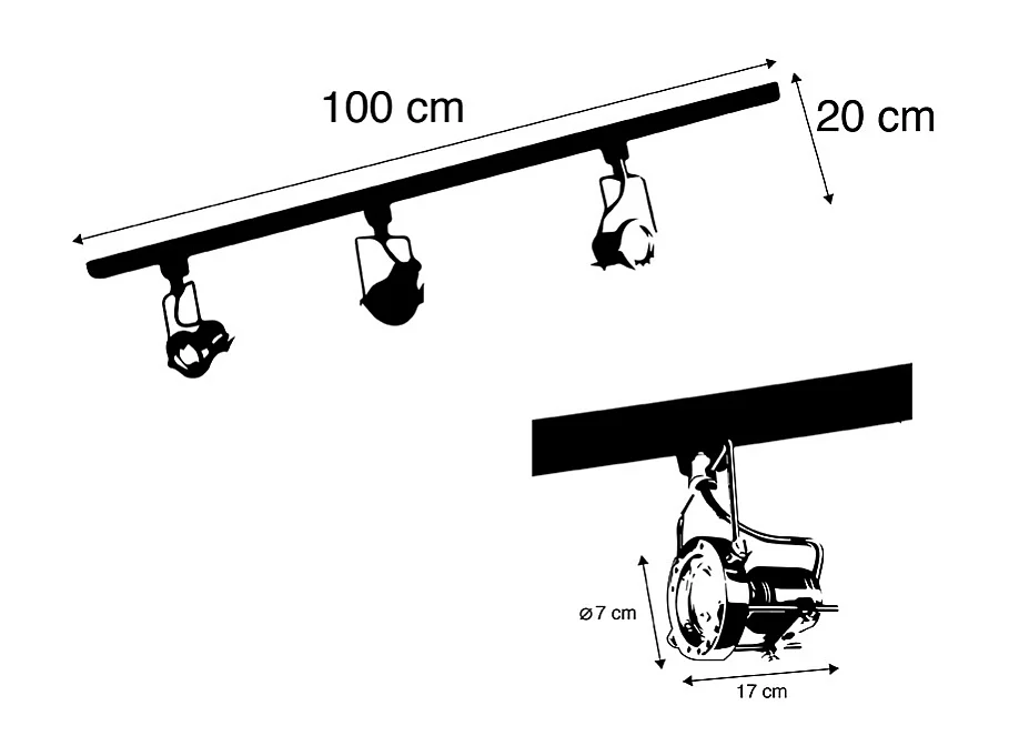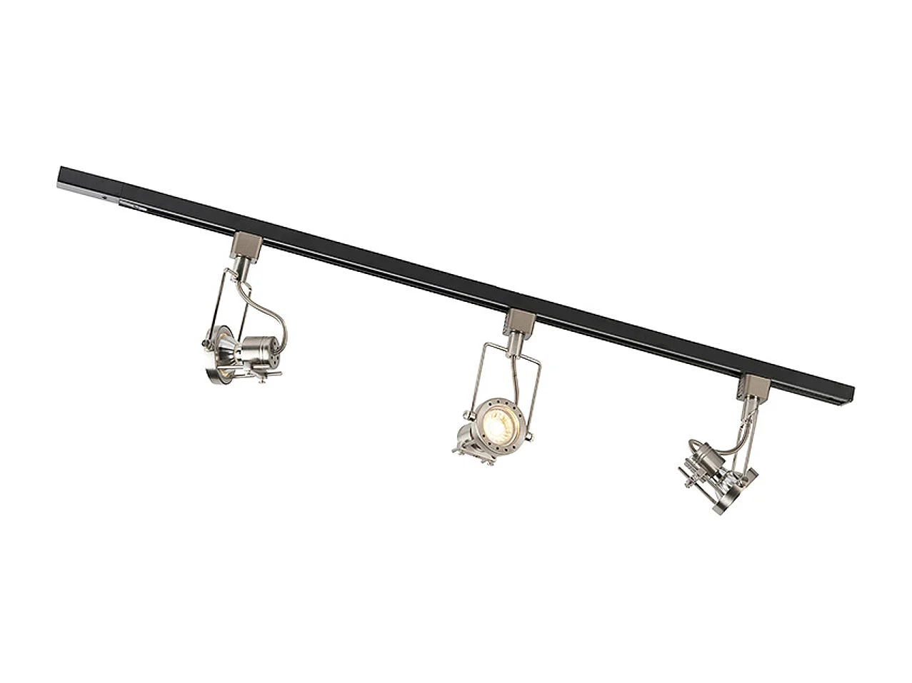 Système sur rail avec 3 spots monophasé noir avec acier - Suplux