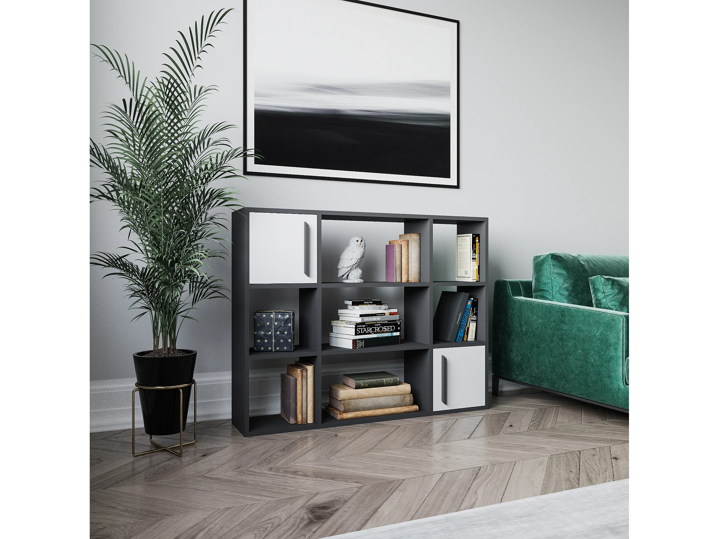 Randall Bibliothèque Rangement avec 2 Armoires et 7 Niches | Dos nu (Anthracite et Blanc)