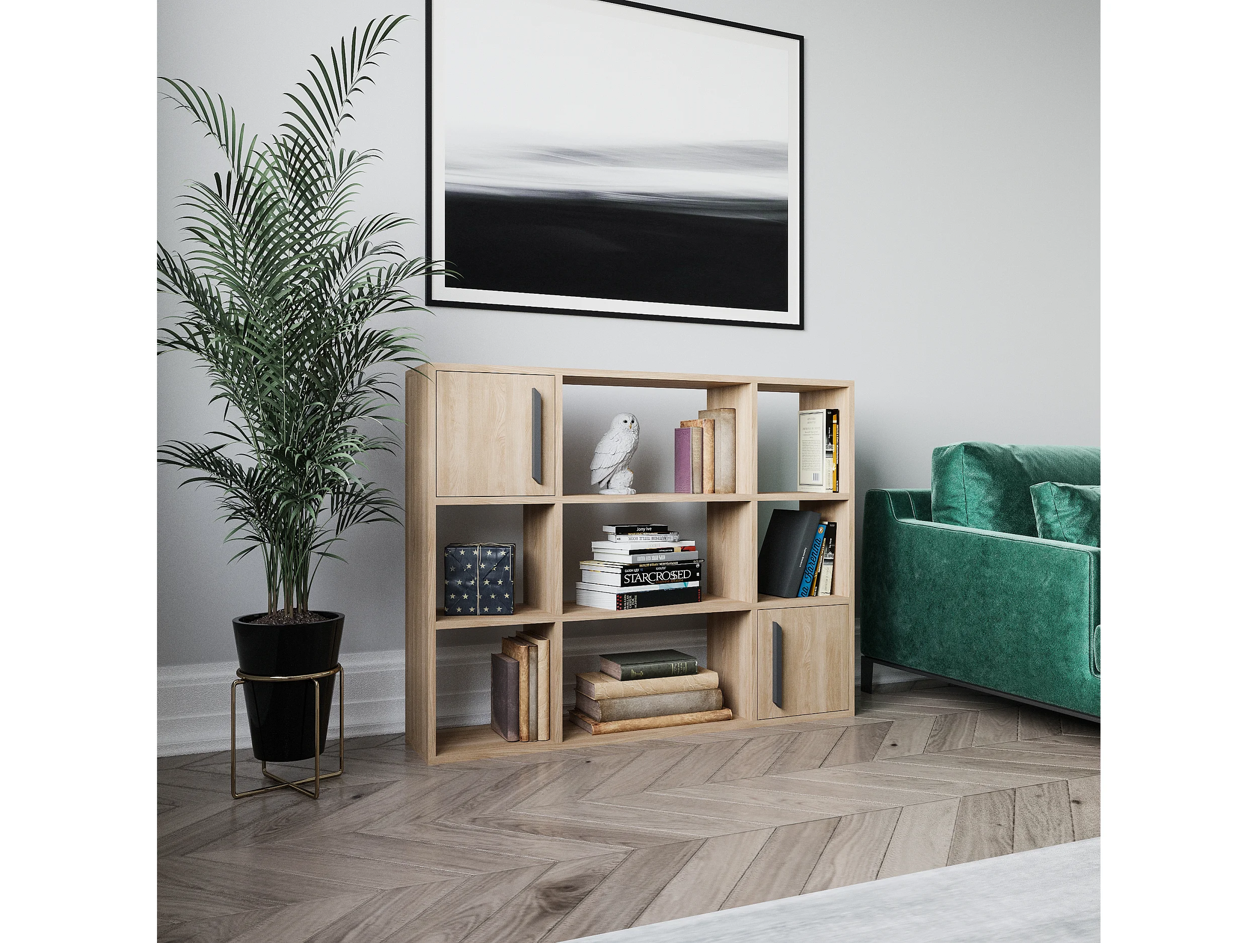 Randall Bibliothèque Rangement avec 2 Armoires et 7 Niches | Dos nu (Chêne)