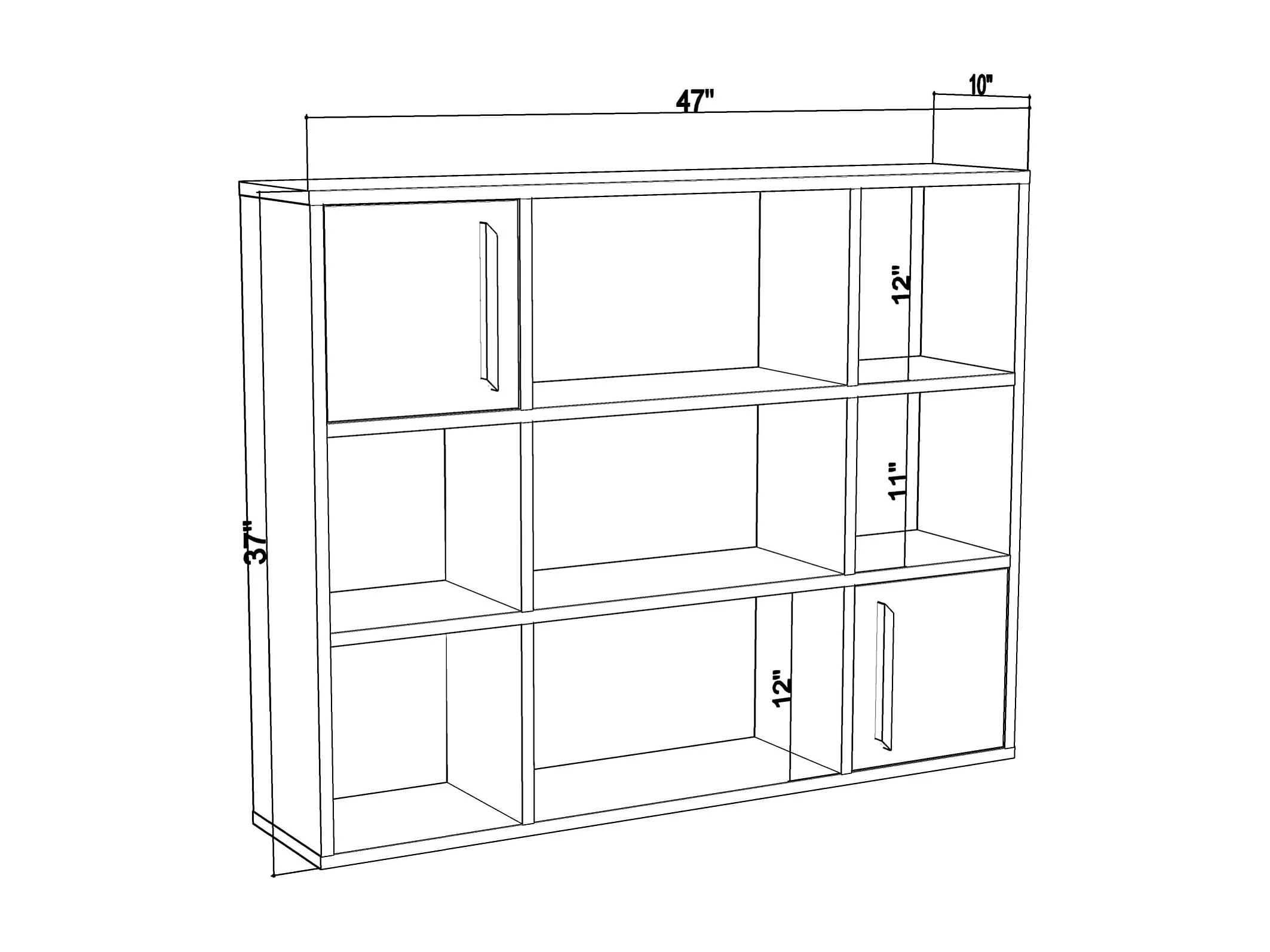 Tasso 123 cm H Bibliothèque 3 Étagères Ouvertes avec 3 Armoires Dos nu Rangement (Anthracite)
