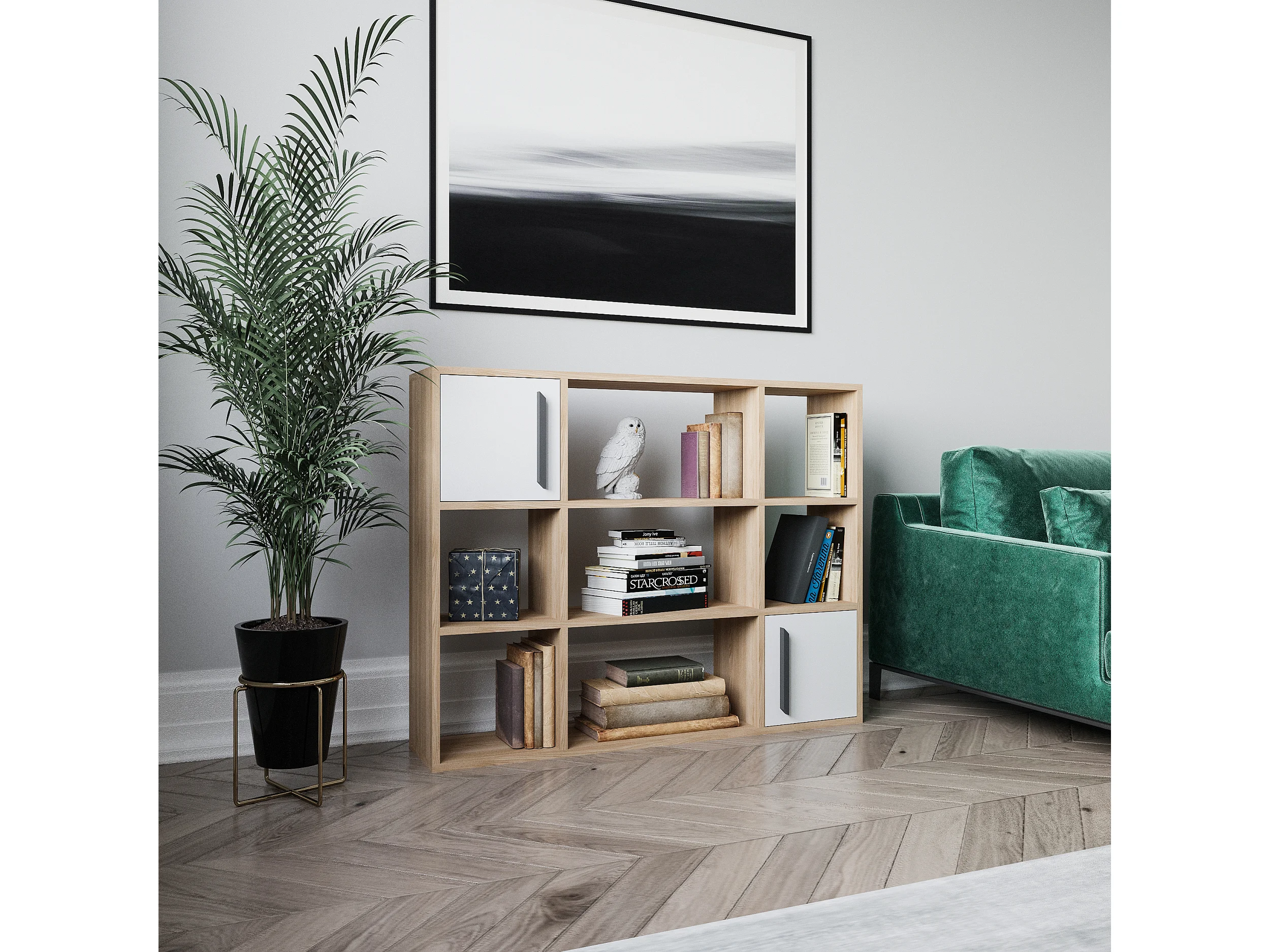 Randall Bibliothèque Rangement avec 2 Armoires et 7 Niches | Dos nu (Chêne et Blanc)