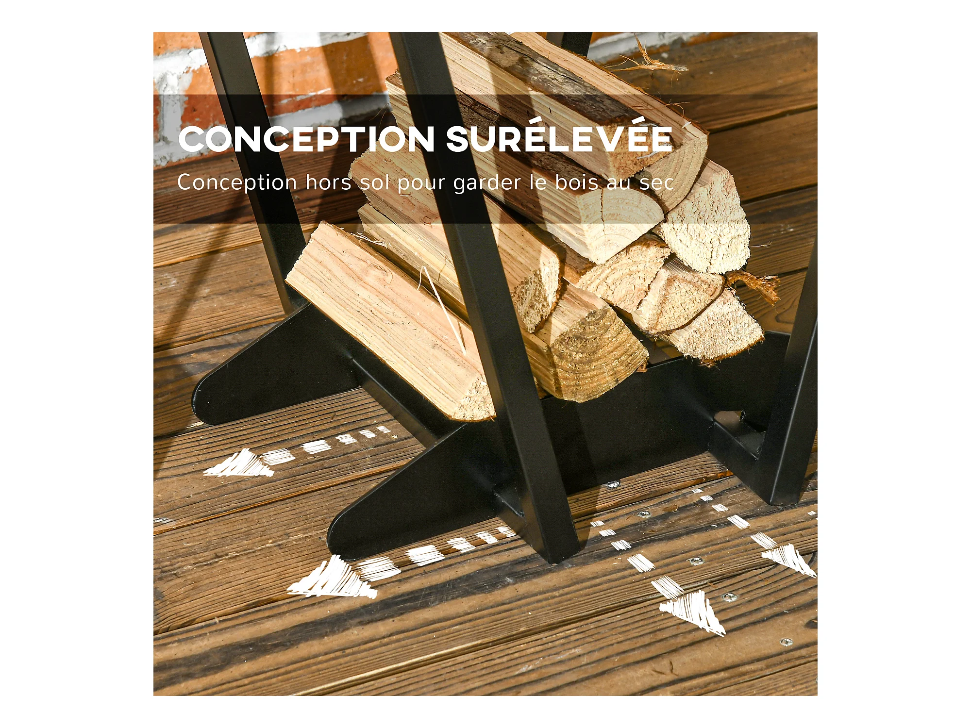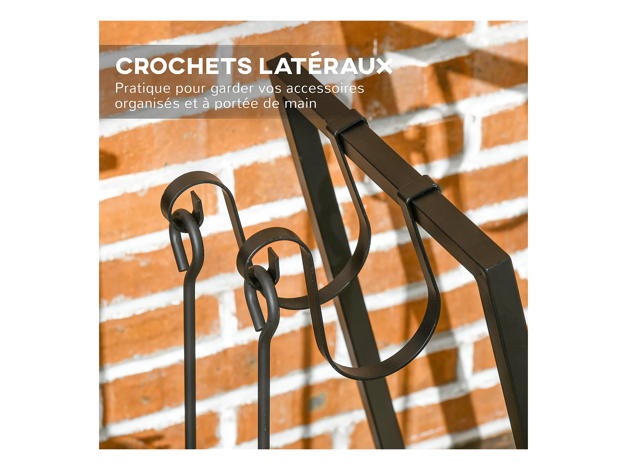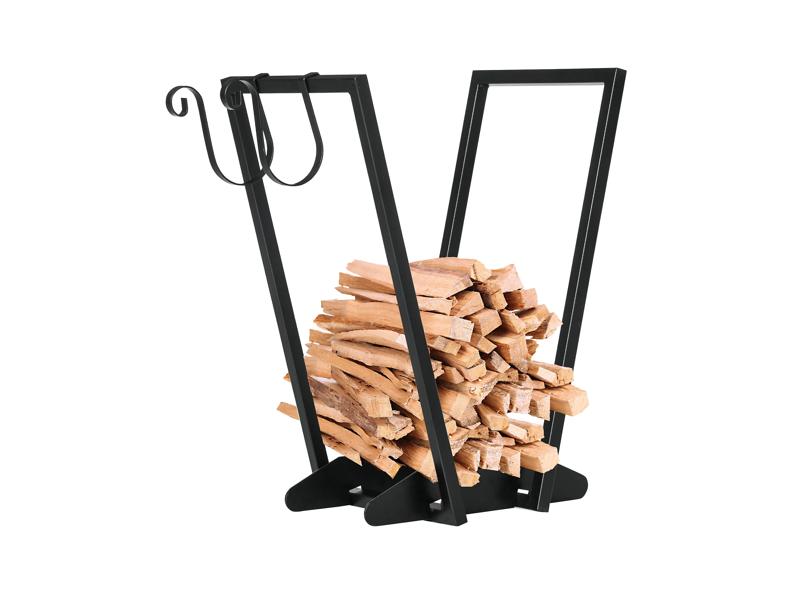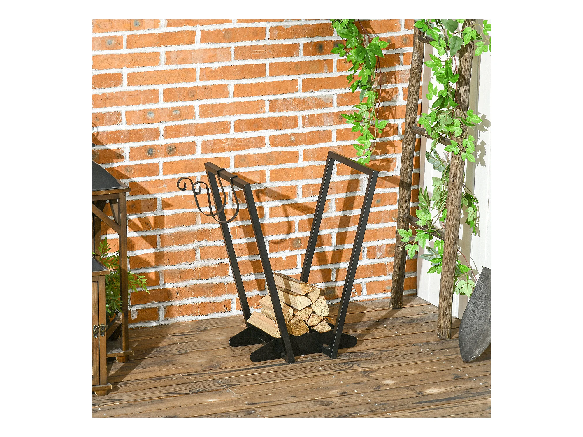 Porte-bûches en métal noir + 4 accessoires