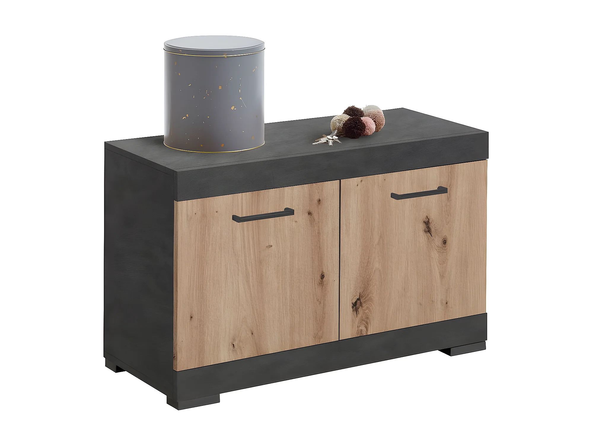 Meuble sous pente 2 portes et 2 étagères - Blanc et naturel - ADEZIO