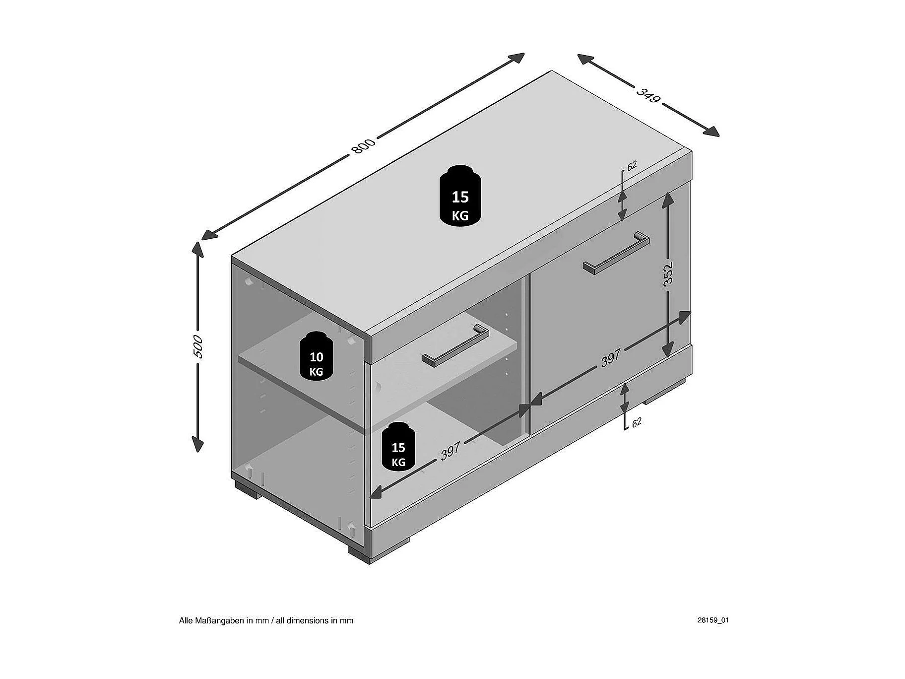 Dressing avec rideau et 1 porte - Avec miroir - L177 cm - Blanc et gris - BERTRAND