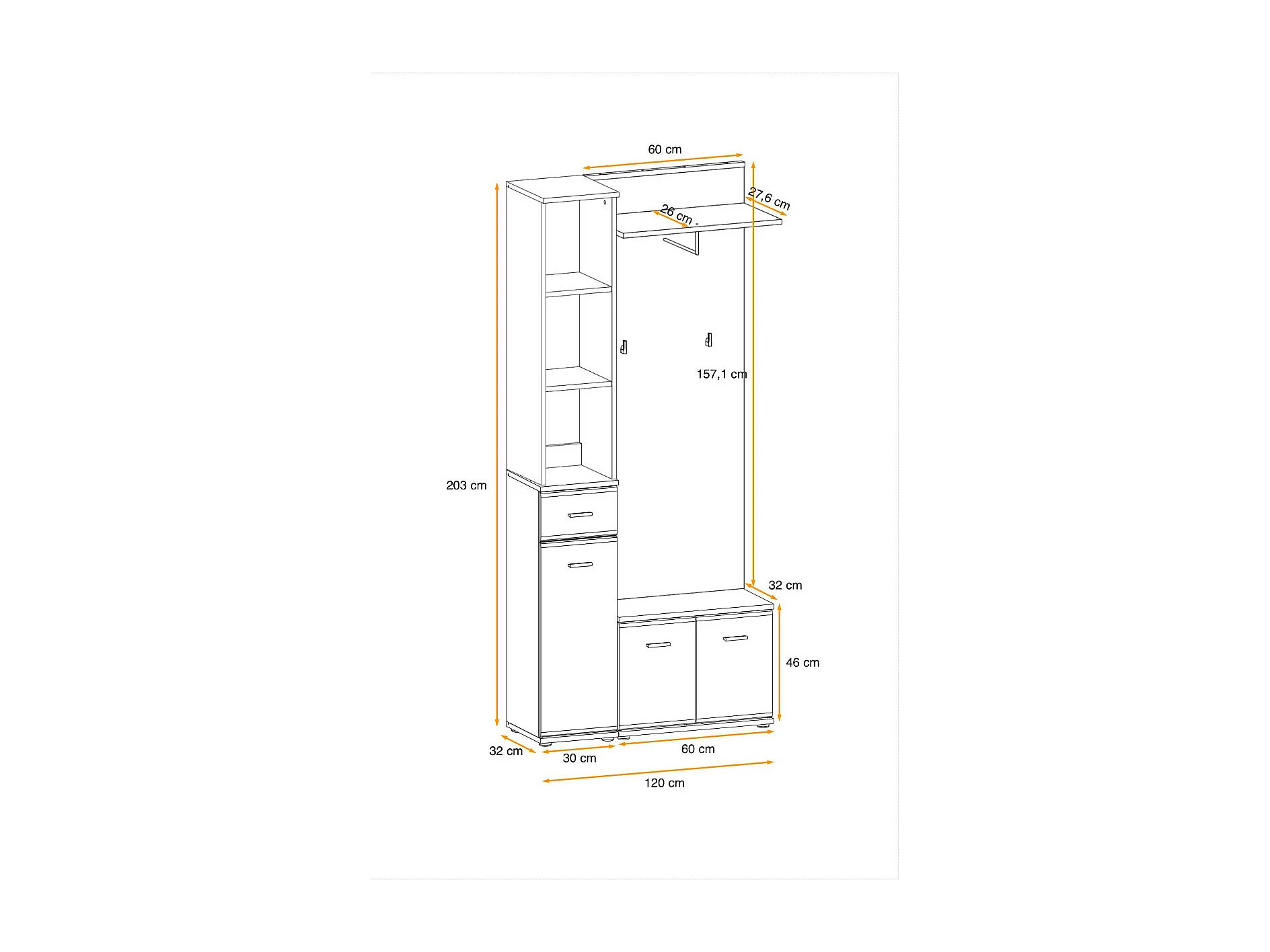 Ensemble Vestiaire 3P "Armario I" 203cm Chêne
