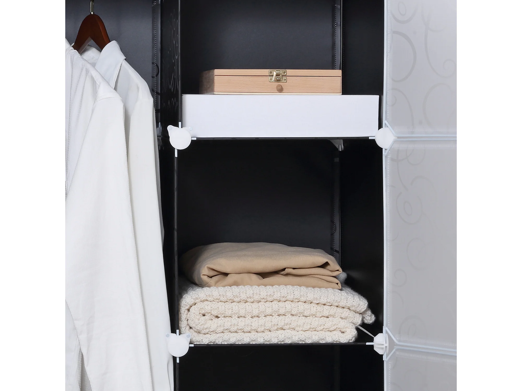 Armoire modulaire DIY avec 16 compartiments et 2 tringles, système de rangement pour vêtements, chaussures, plastique, noir (145x46x162 cm)
