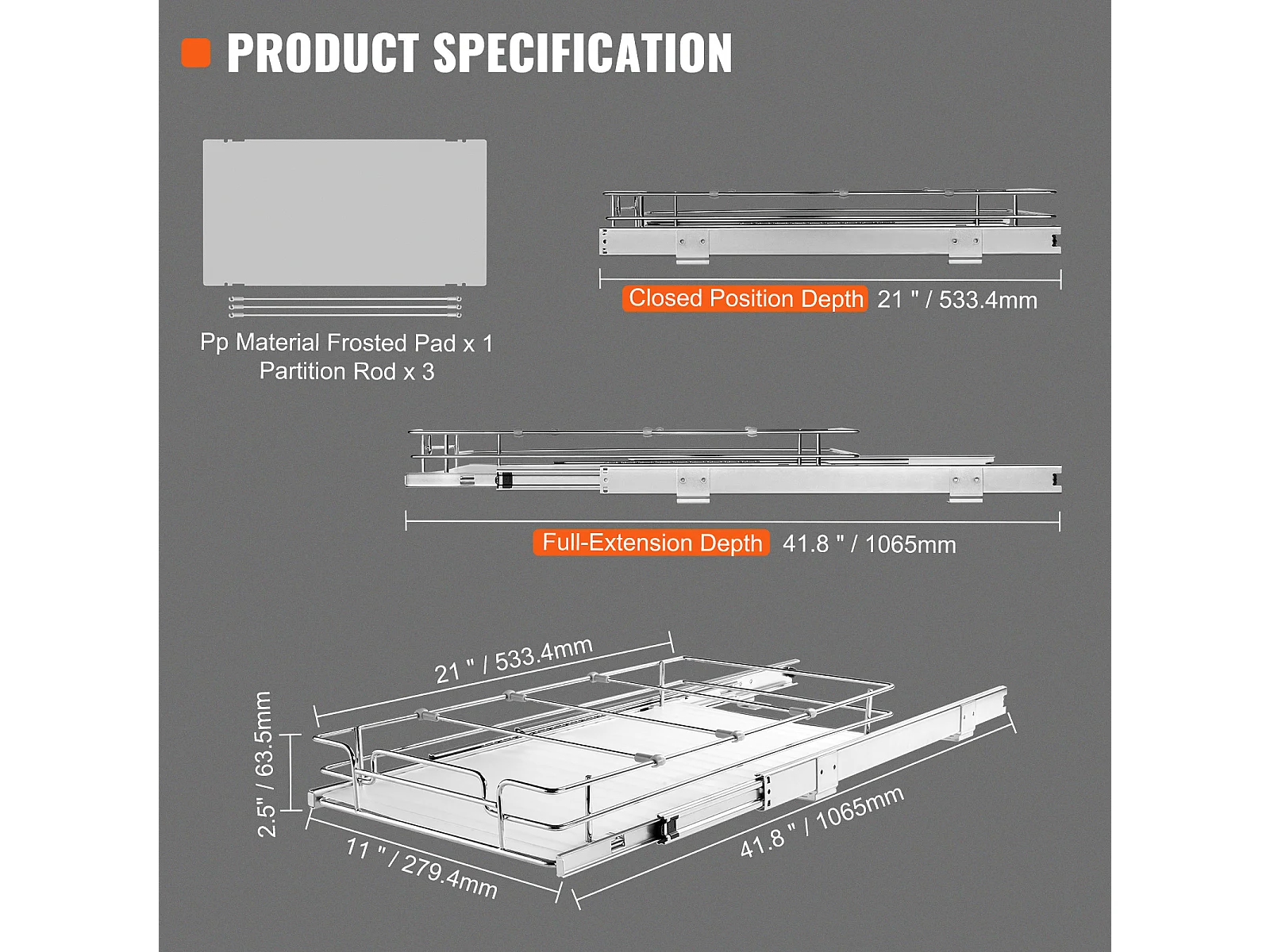 Rangement sous Évier SucceBuy, Panier de Tiroir en Fil Métallique sous l'Évier, 279 x 533mm