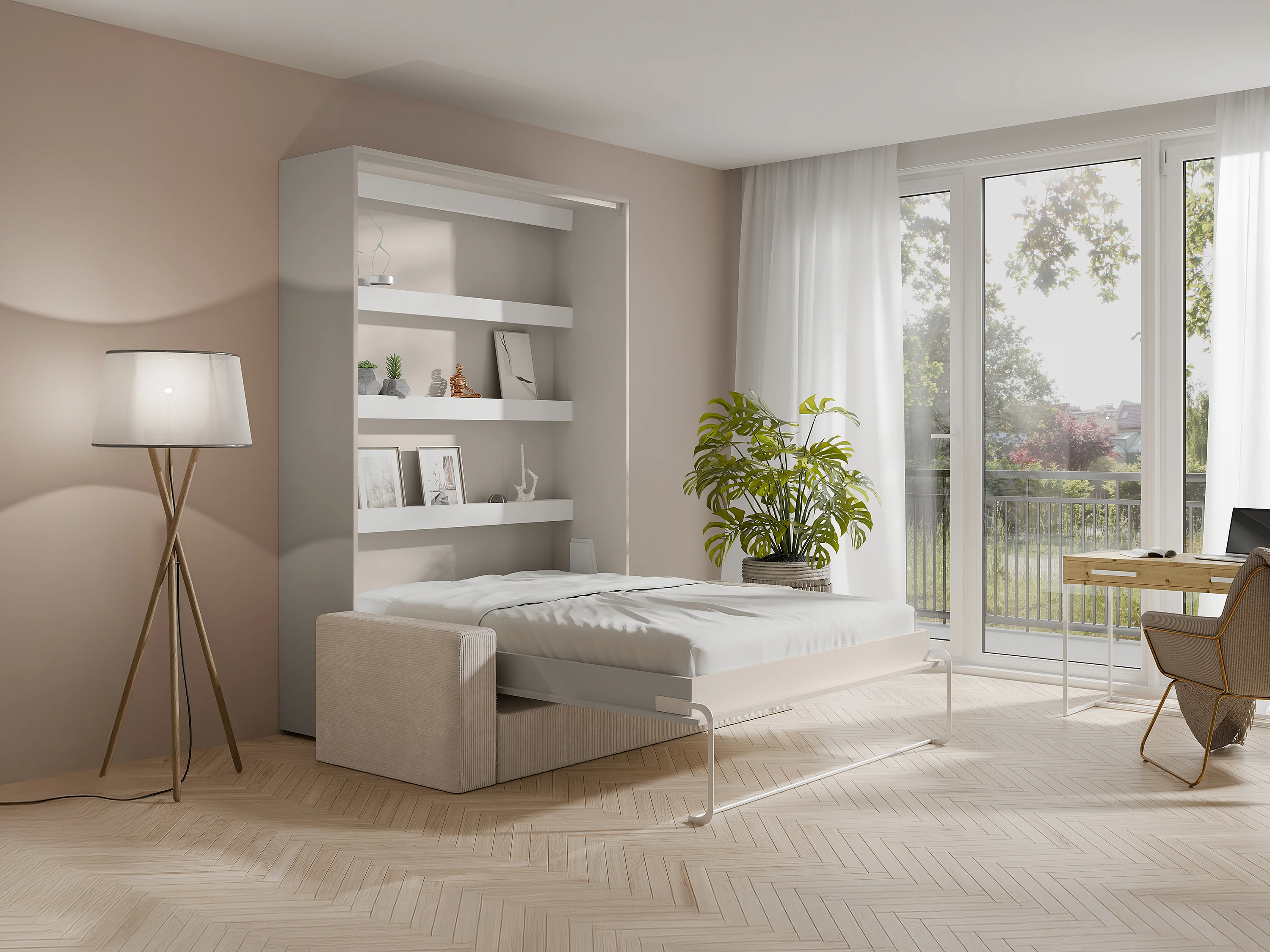 Lit escamotable 140 x 200 cm - Ouverture verticale manuelle - Avec LEDs - Beige + Canapé - RAPILI