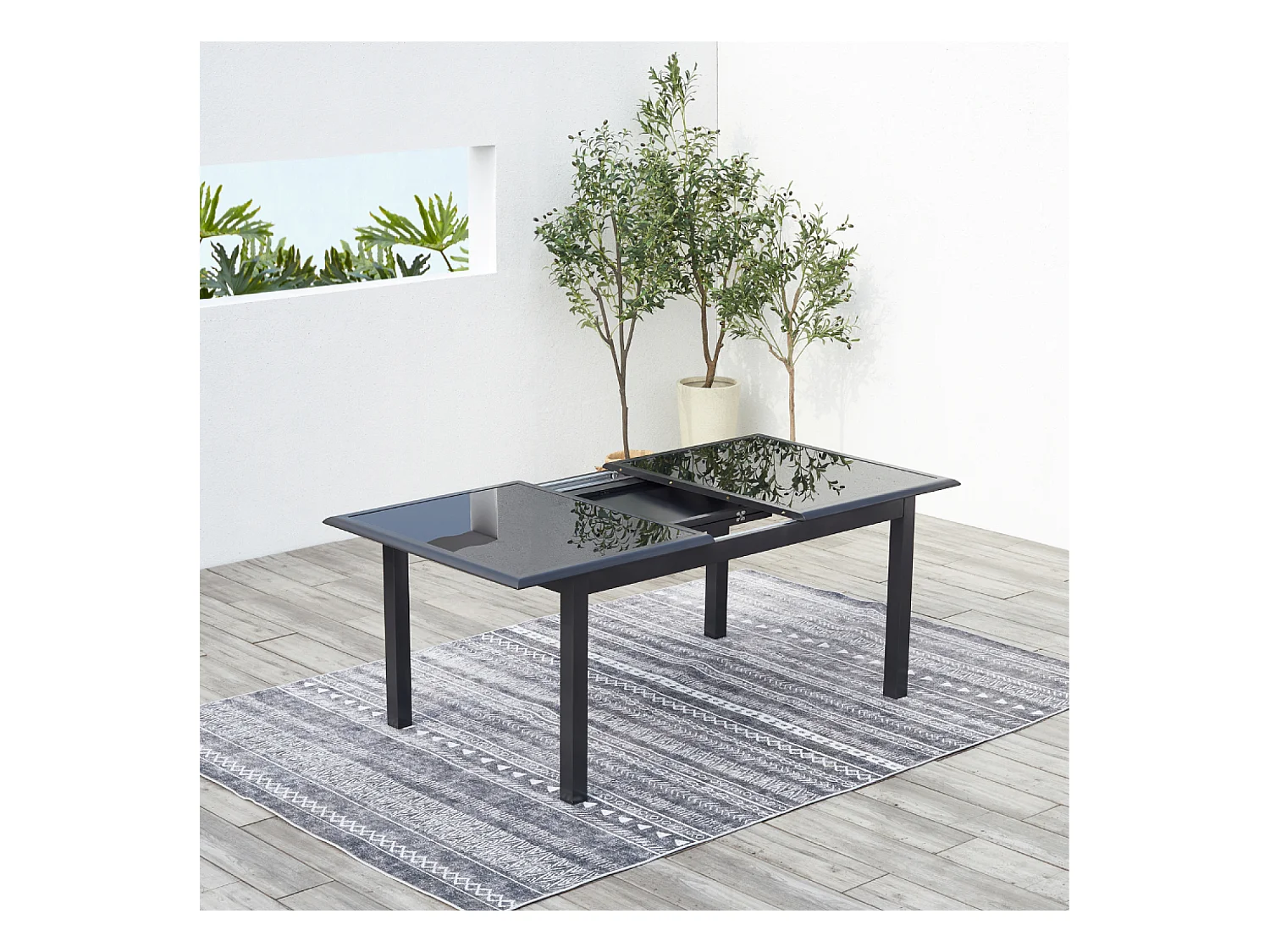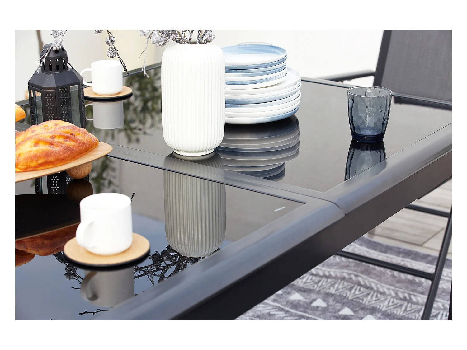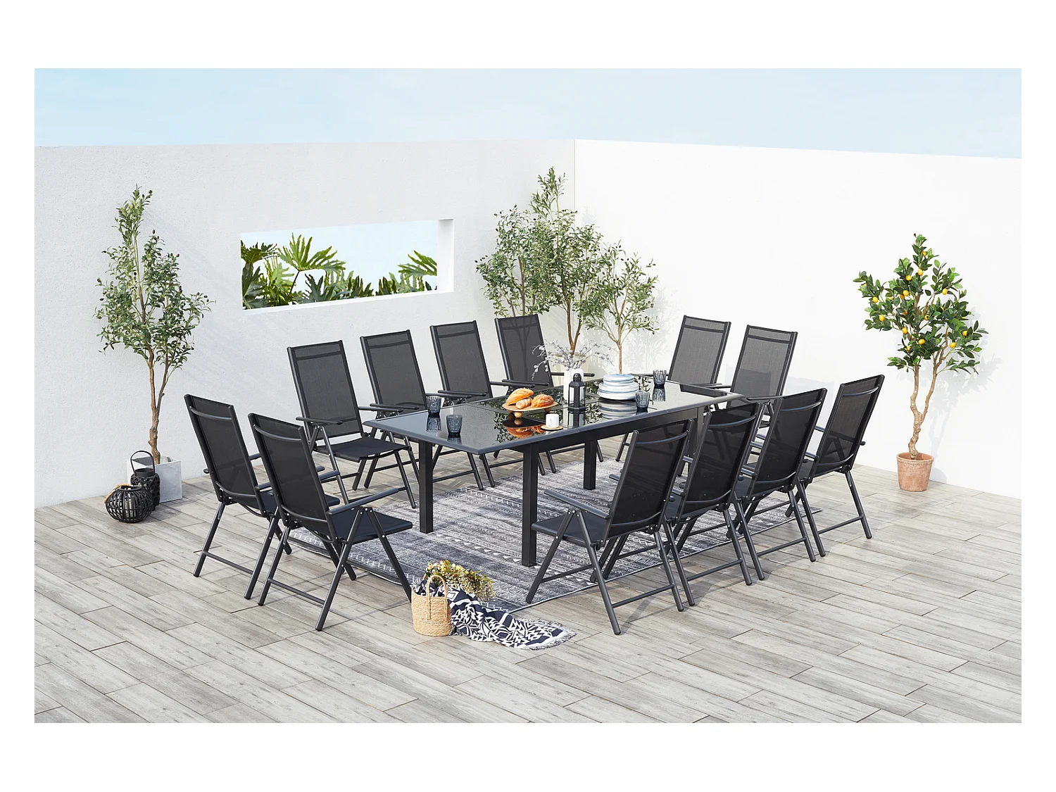 Table de jardin et 12 chaises en aluminium gris RAVENNE
