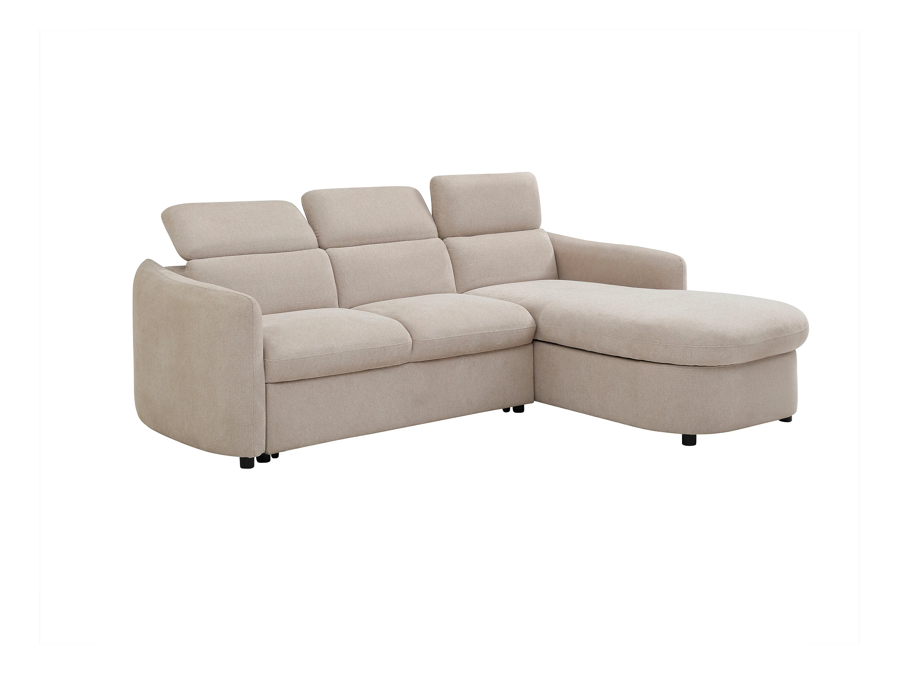 Canapé d'angle droit convertible en tissu beige RAVIELA