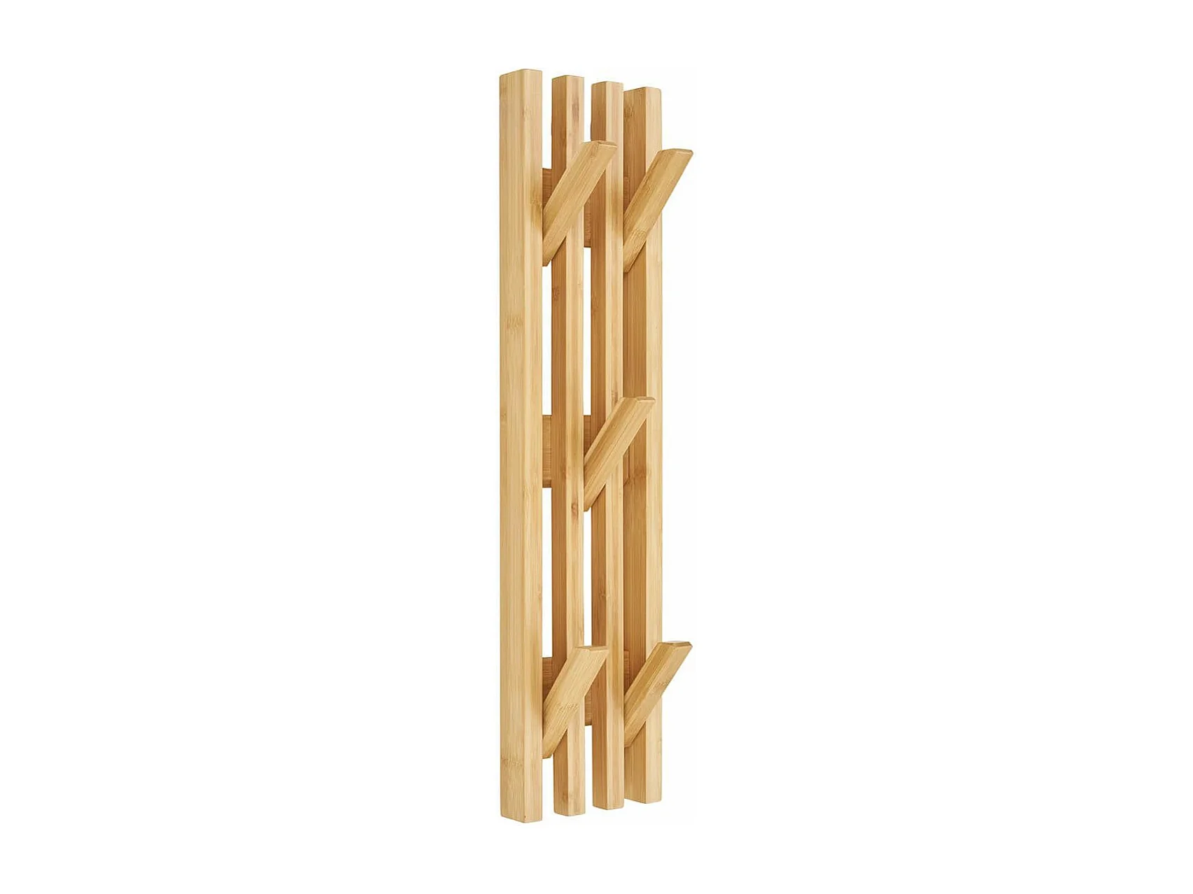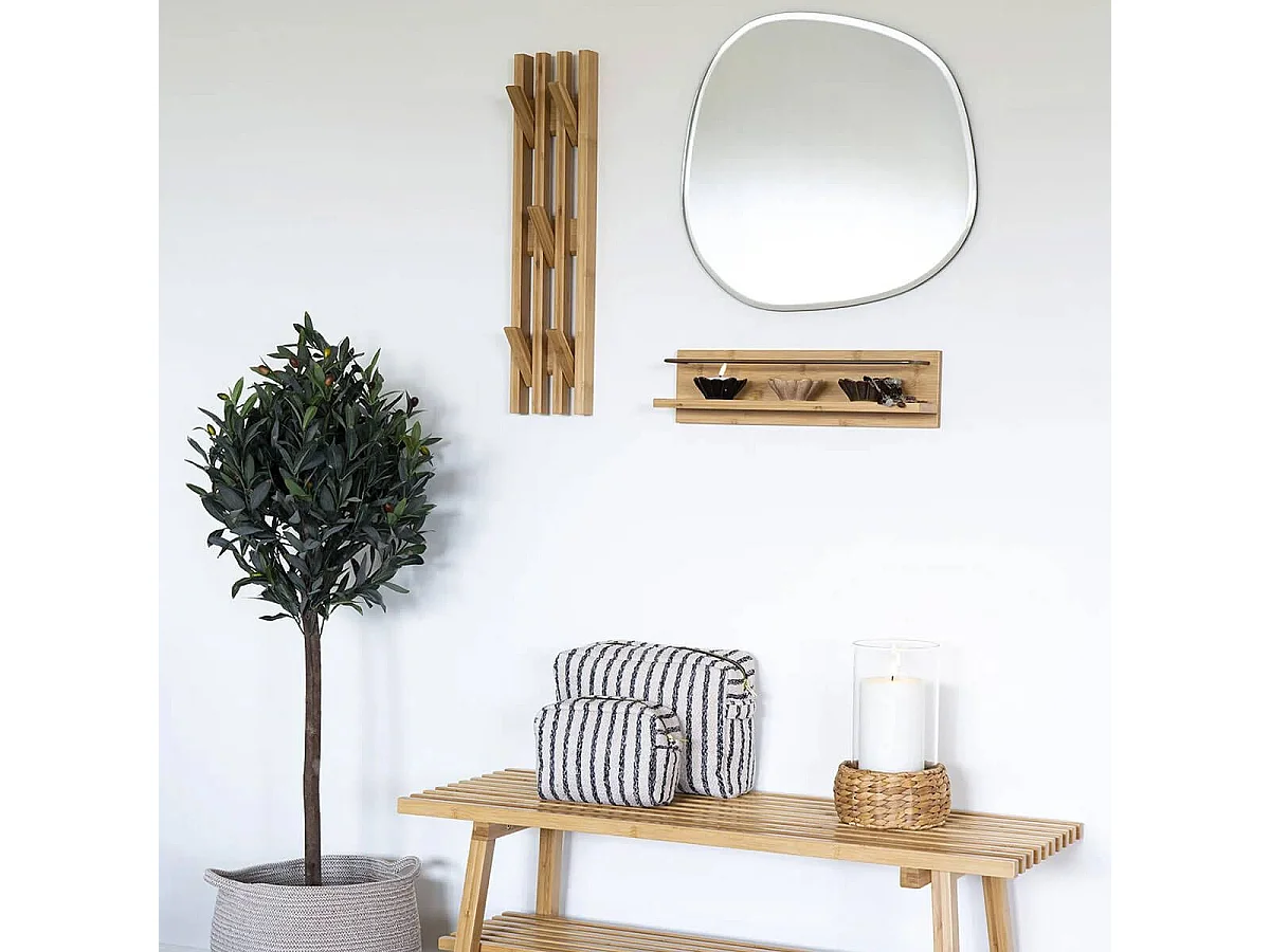 RAYAN - Portant Mural en Bambou avec Patères Mobiles