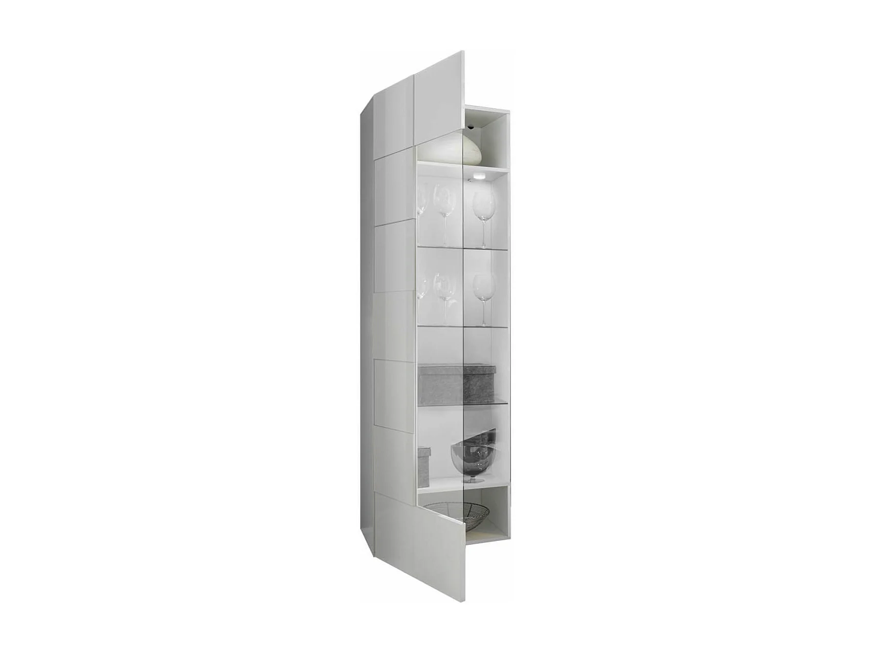 REBECCA - Vitrine 1 Porte Finition Blanc Laqué Relief Weiss Damiers et Leds