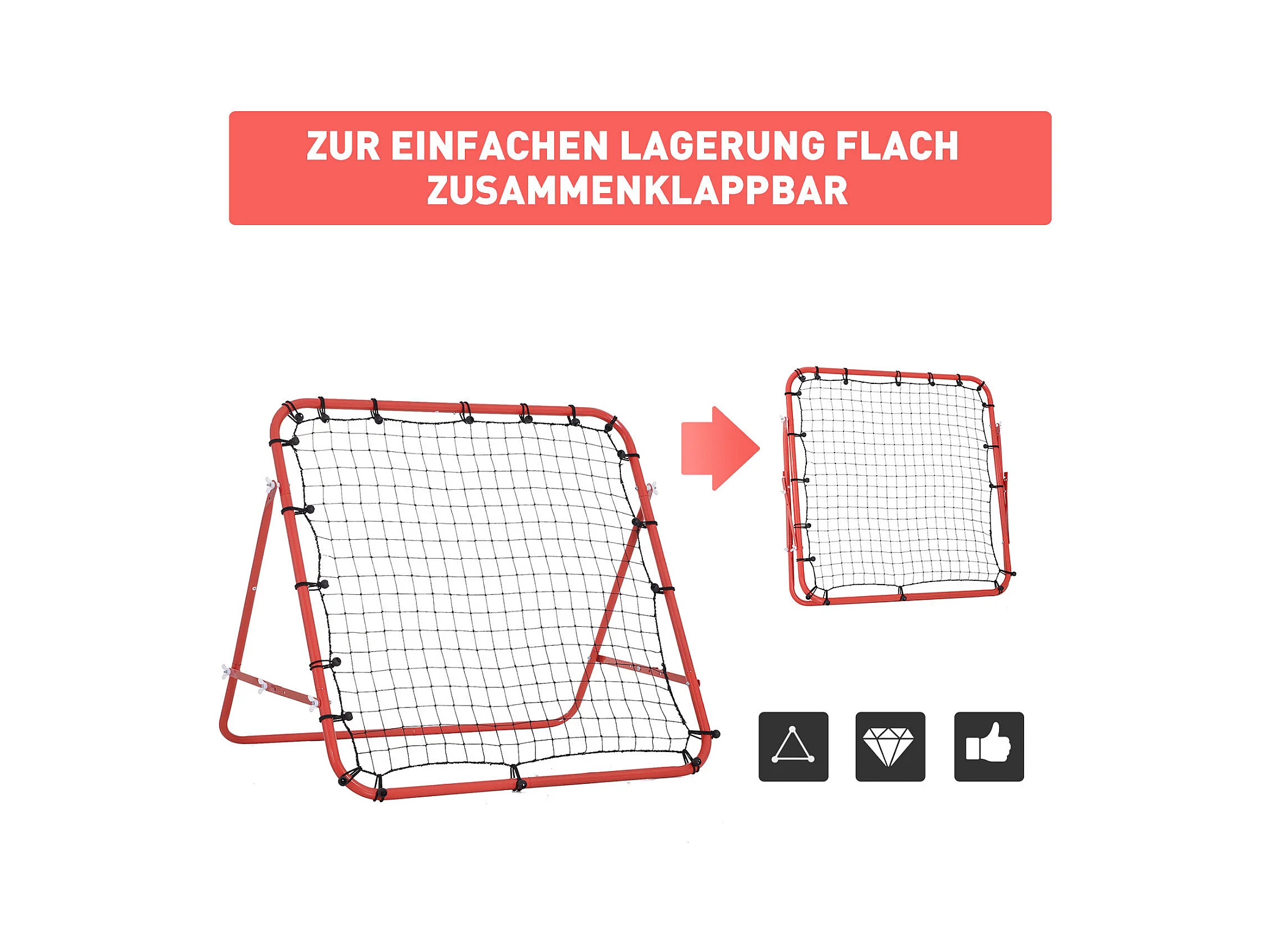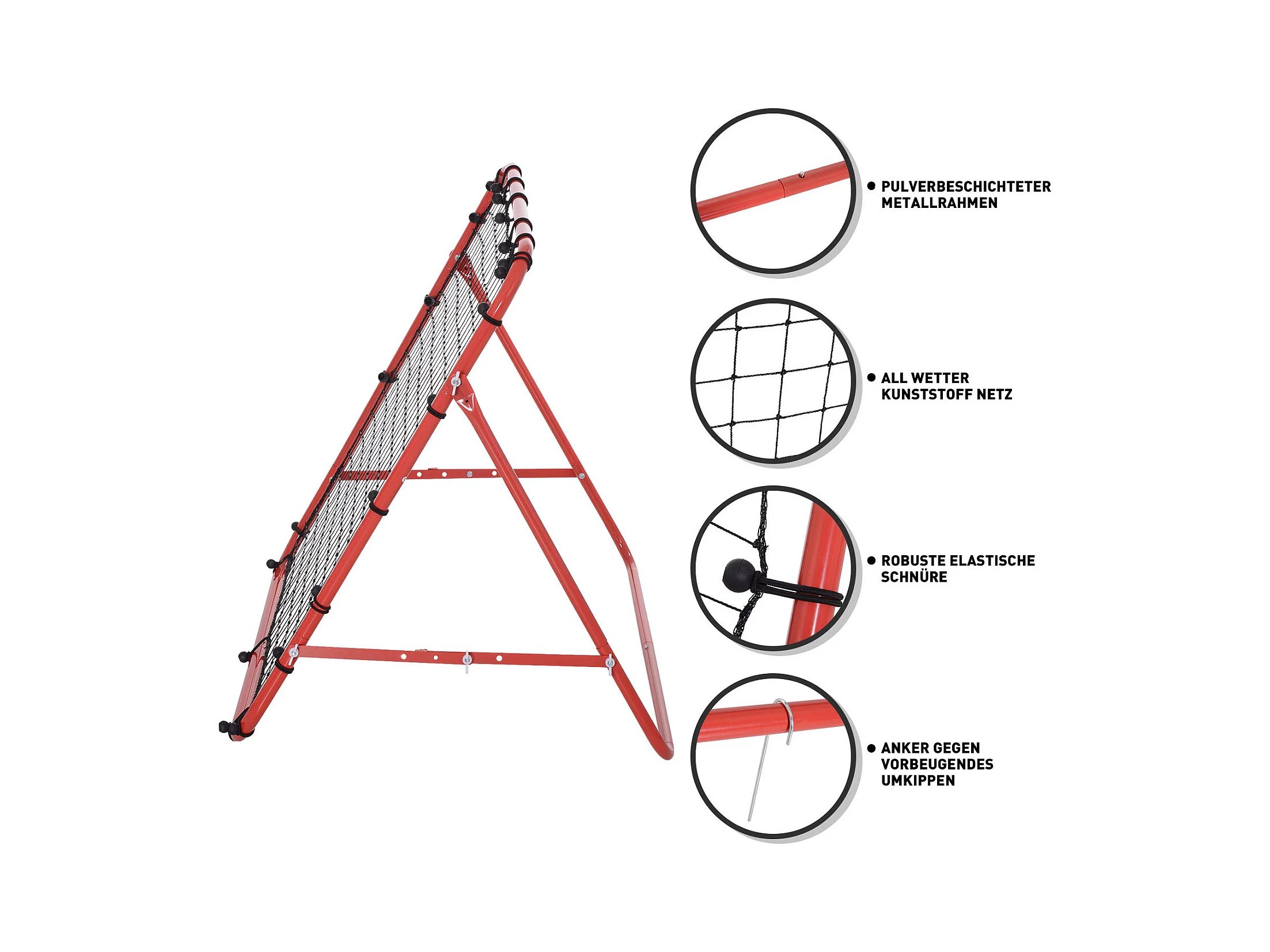 Rebondisseur de football avec angle réglable, métal, rouge et noir (96x80x96 cm)