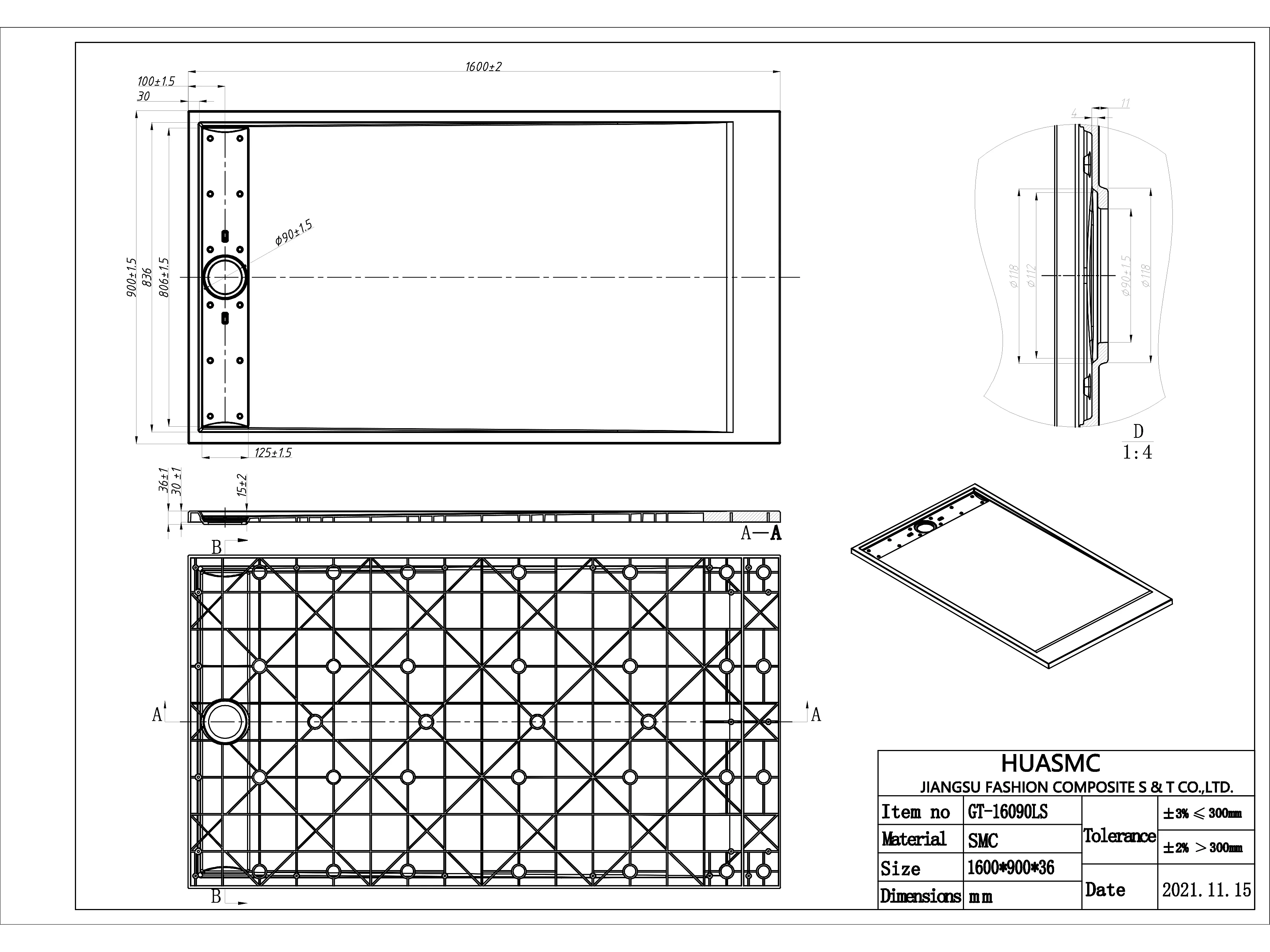 Receveur de douche extra plat à poser ou à encastrer recoupable en résine SMC - Blanc - 160 x 90 cm - LYROSA