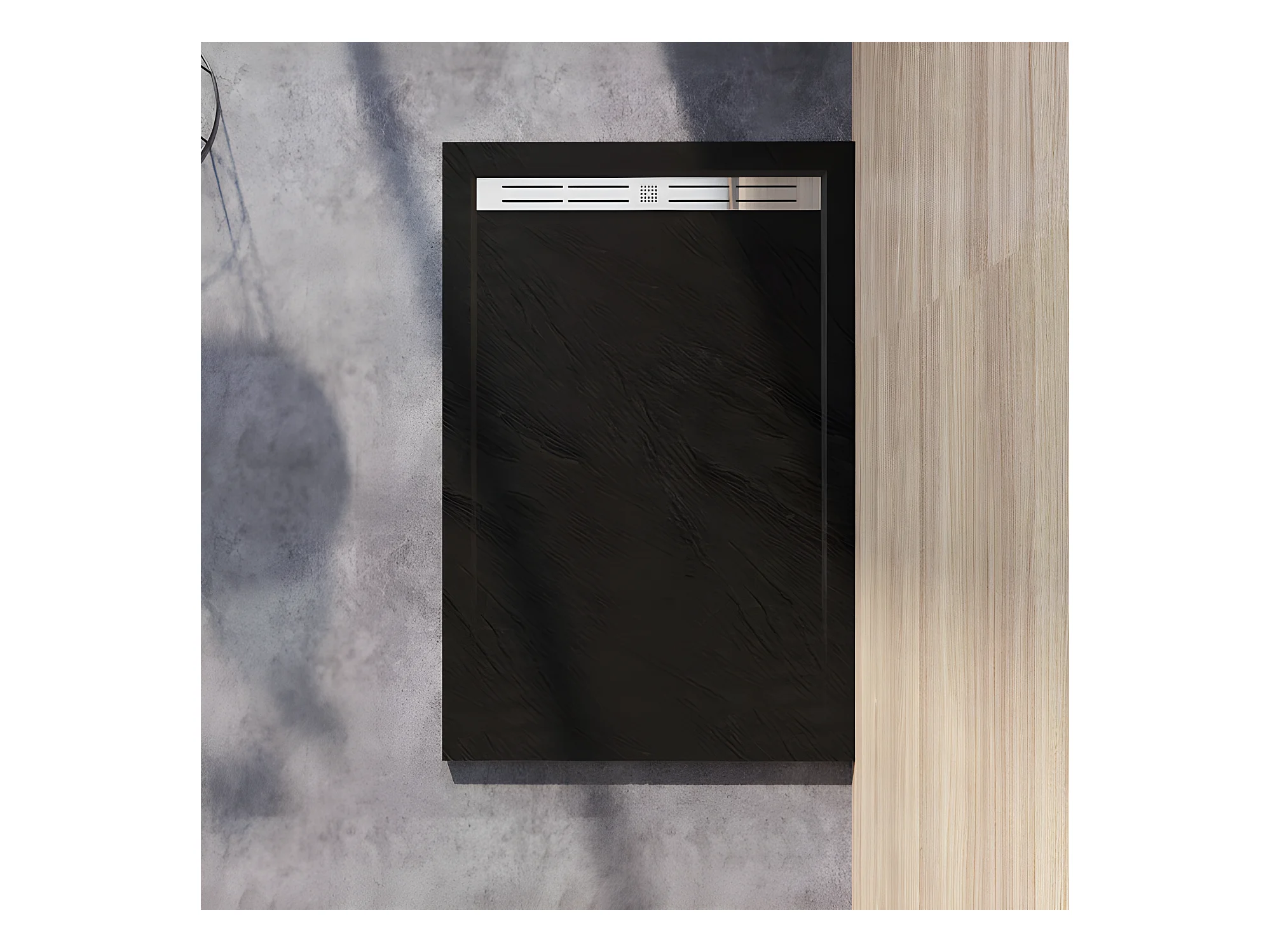 Receveur de douche 120x80cm Extra-plat bac à douche noir, avec grille en inox et bonde de série