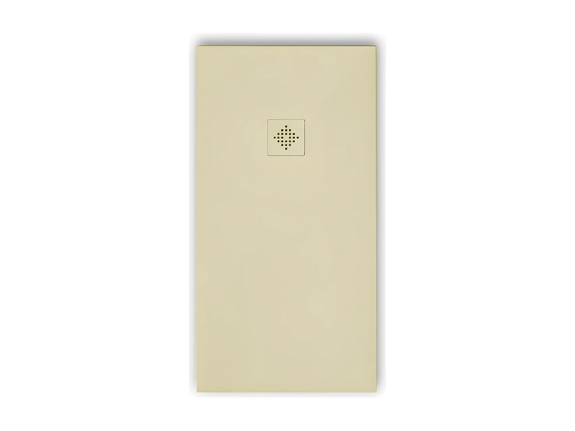 Receveur de douche 90 x 100 cm extra plat PURE en résine surface ardoisée beige Grille beige