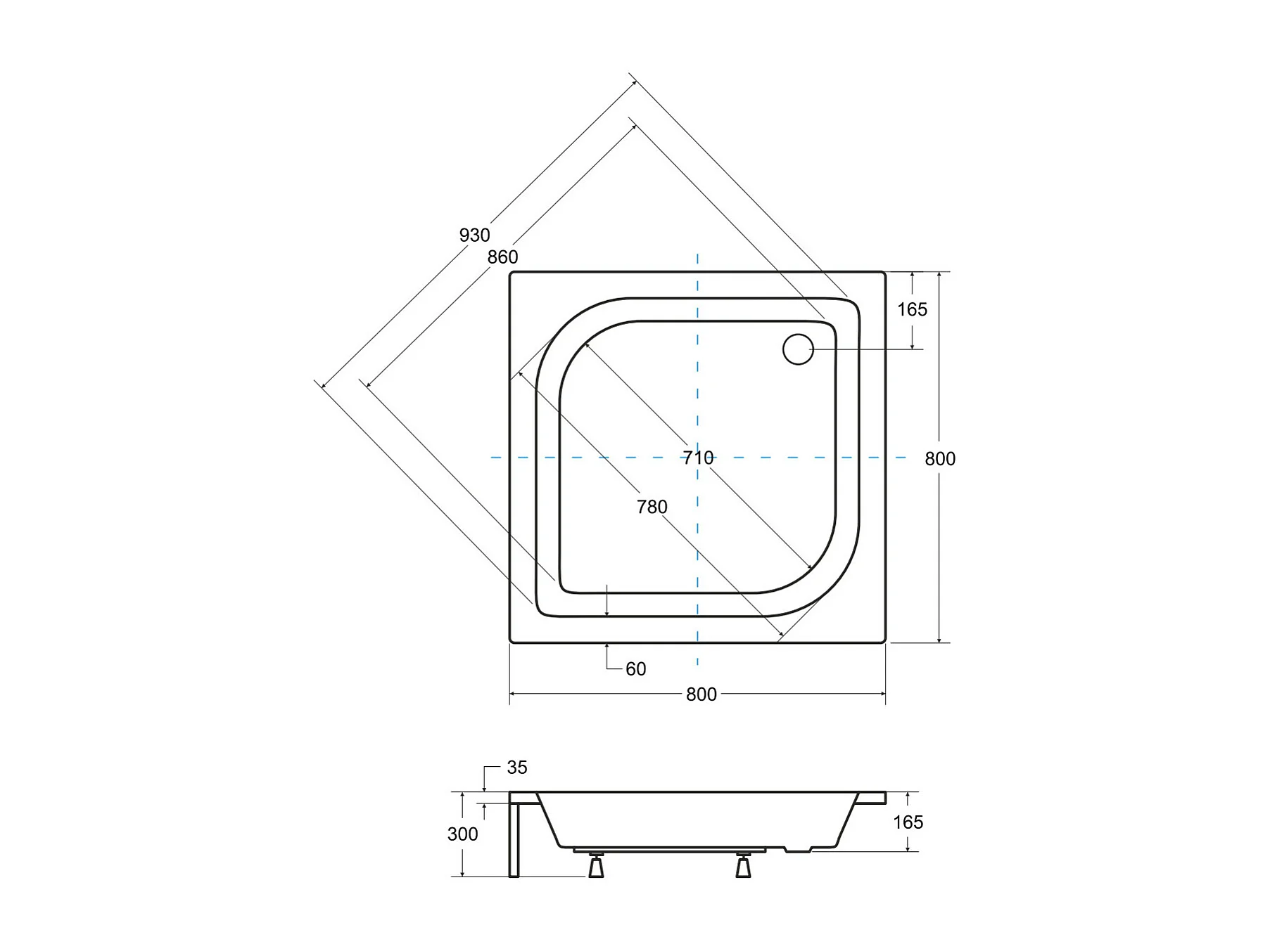 Receveur de douche ARES carré 70x70-80x80-90x90 cm blanc - Dimensions: 80x80 cm