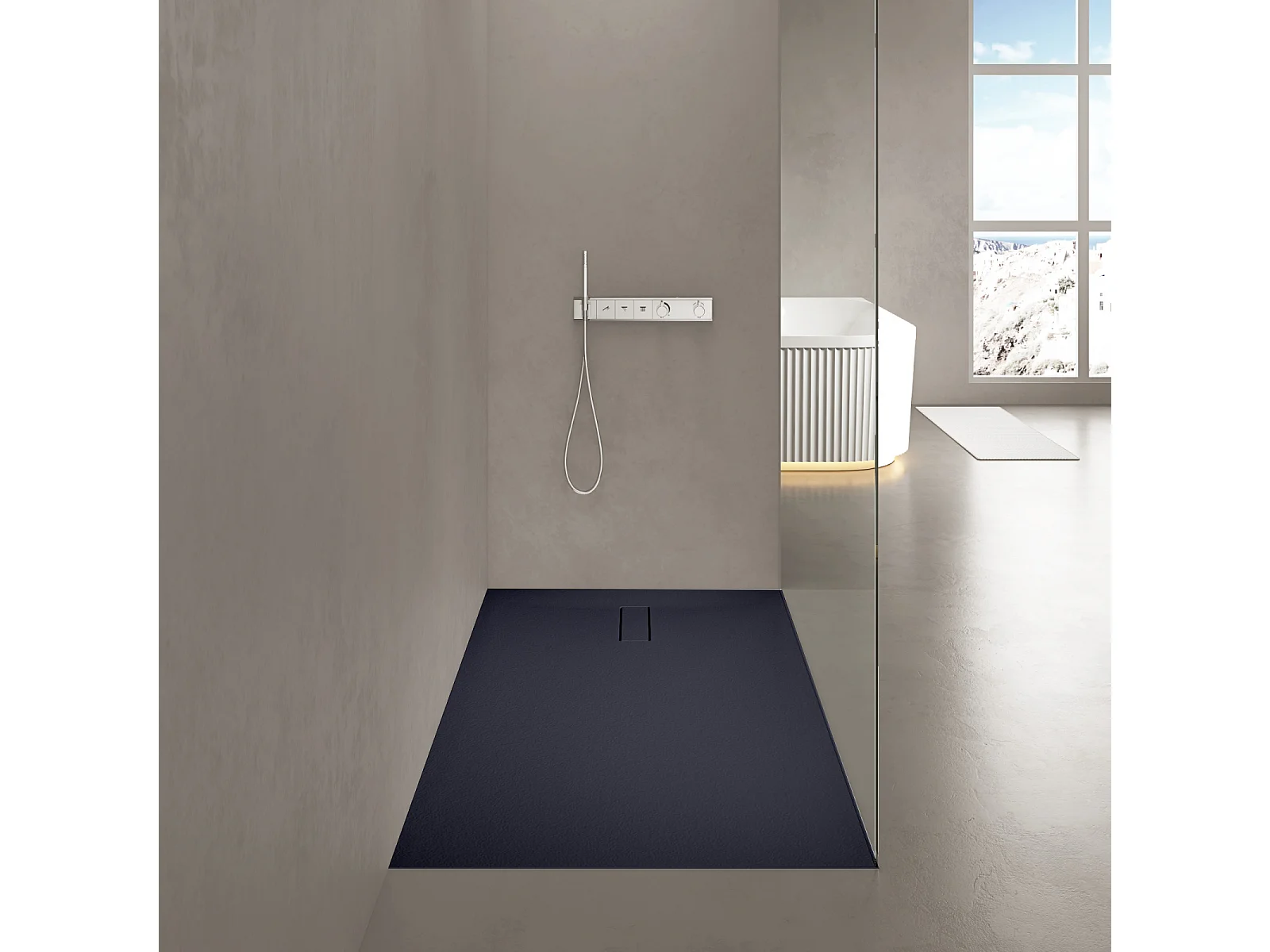 Receveur de douche aspect pierre extra-plat gris anthracite - Bonde incluse