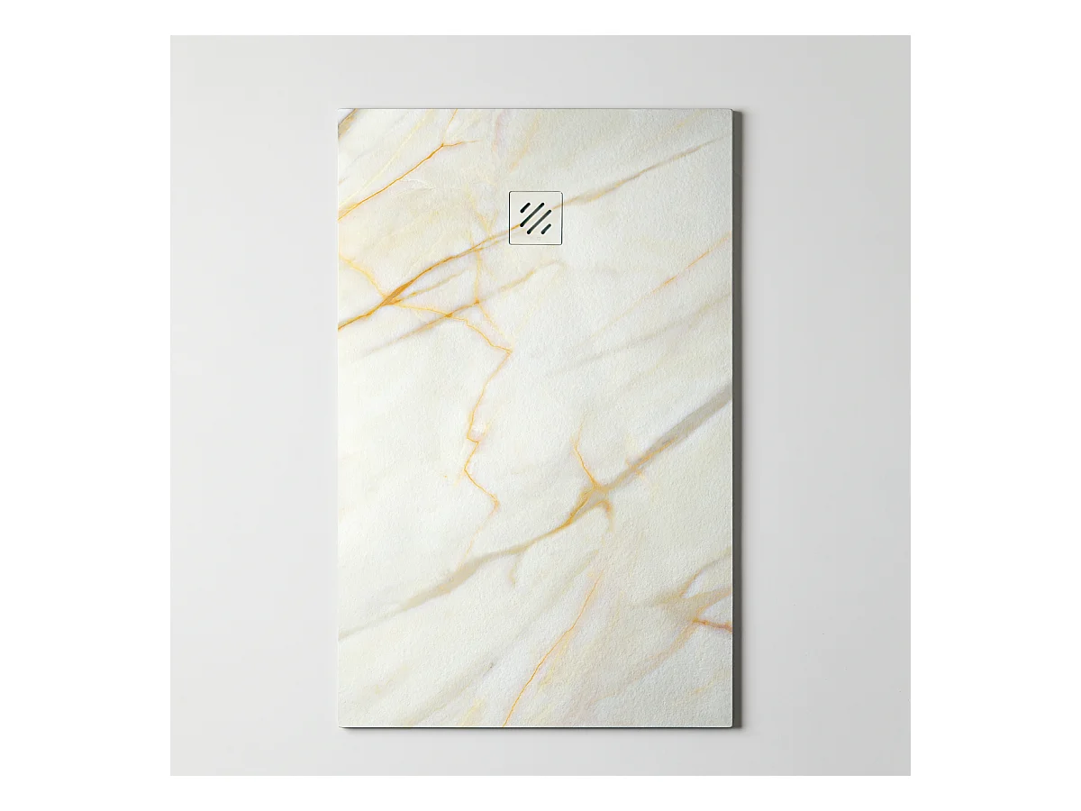 Receveur de Douche Extraplat 90x100x2,6cm – Impression Calacata Gold en Résine Minérale - Antidérapant - RÉSIGRÈS