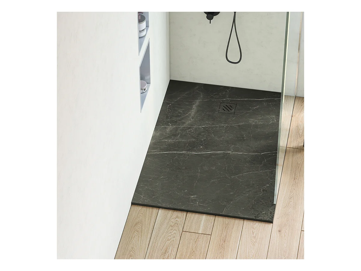Receveur de Douche Extraplat 80x120x2,6cm – Impression Marquina en Résine Minérale - Antidérapant - RÉSIGRÈS